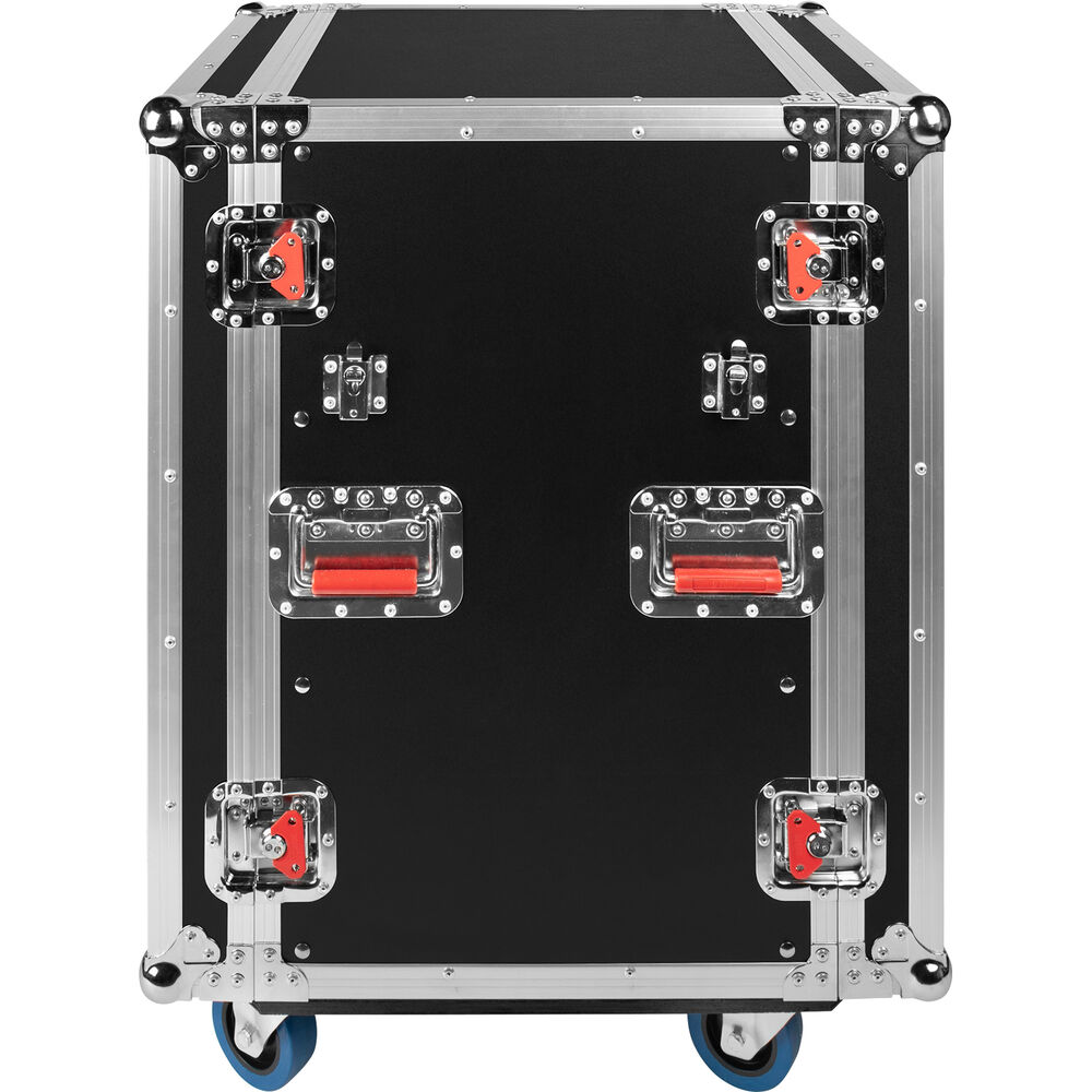 The GTOUR16U-TBL sports a rugged design with all of the features of the G-TOUR series, including tough, commercial grade plated hardware, reinforced steel ball corners, spring-loaded rubber grip handles, recessed butterfly twist latches, and a laminated 3/8" plywood construction. The 17" deep racks feature both front and rear rails, and the whole case easily folds up for quick and simple transport or storage.