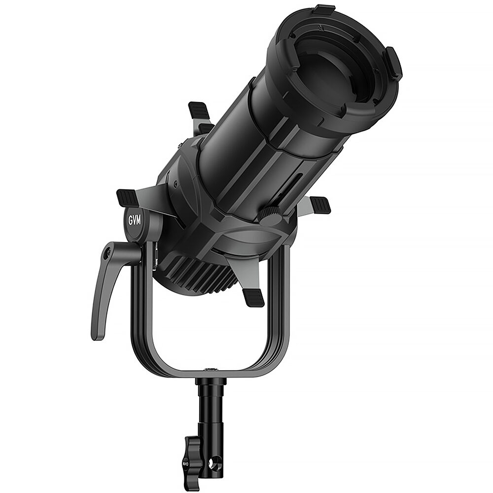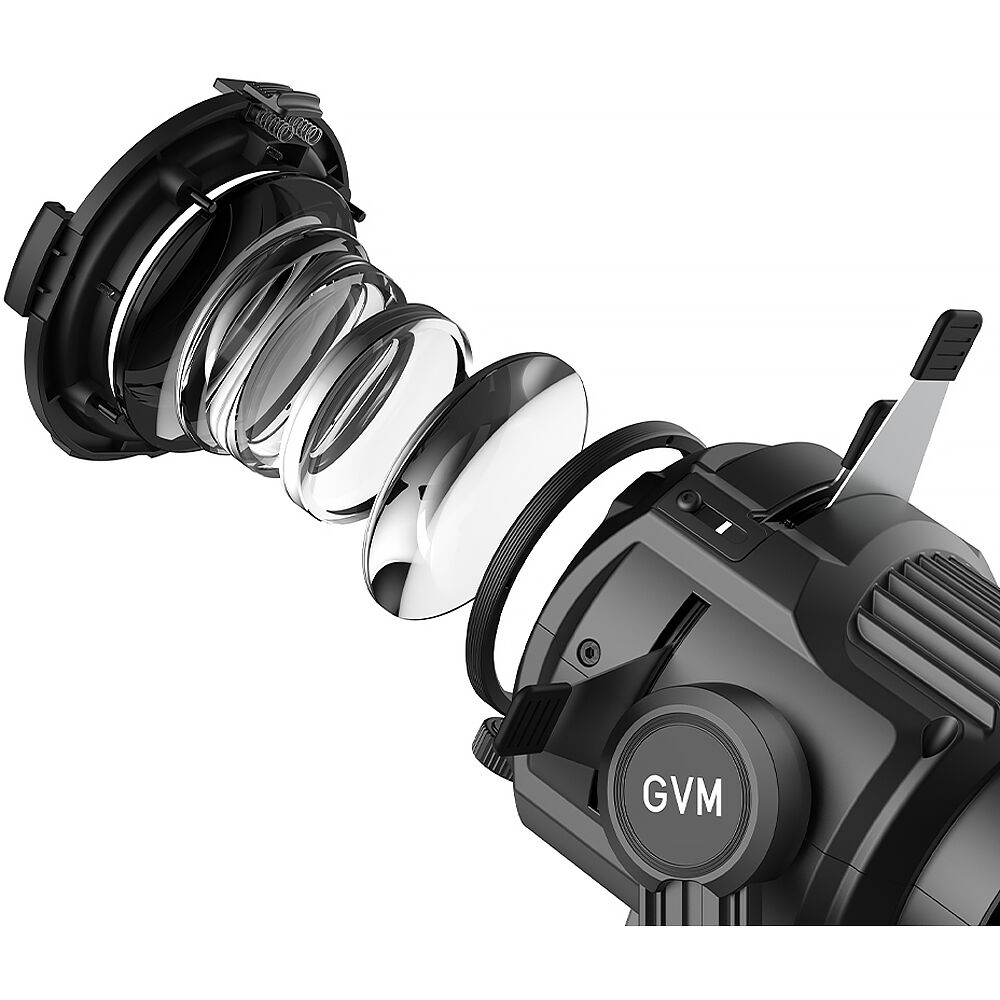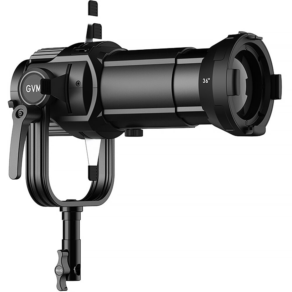 A high-quality optical system designed for a wide range of GVM fixtures, the 36° Projection Kit from GVM instantly transforms Bowens mount LED lights with up to 300W into a spotlight. The included 36° lens is ideal to achieve a wider illumination. With an integrated four-leaf cutter, you can easily shape the beam for precise control. Versatile and suitable for a variety of setups, such as studio photography, video recording, and film and television setups, this kit also includes a gobo holder and 12 gobos to project unique patterns.