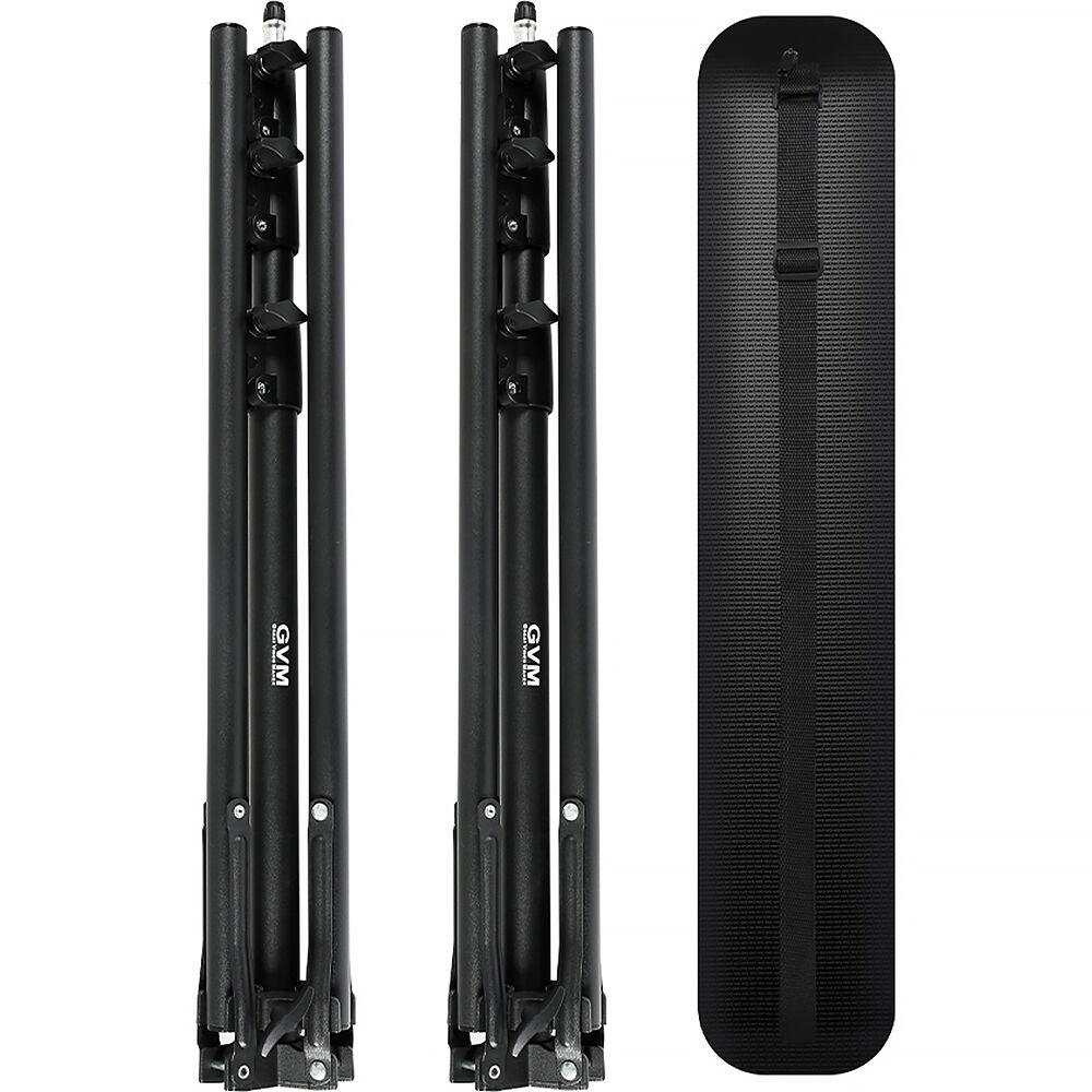 Offered here in a 2-pack, the Foldable Light Stand from GVM is designed to seamlessly support a range of GVM LED lights, including the 1000D, 1200D, 1500D, SD200D, and SD300D. Built from a lightweight, corrosion-resistant aluminum alloy, each stand weighs only 2.9 lb while being strong enough to support your lights on location. Featuring a 5/8" top stud for mounting and a maximum height of 82.7", the stands fold down to a compact 25.6" for storage in the included bag. The two-pack kit allows you to set up dynamic multi-light scenes with your existing GVM LED lights.