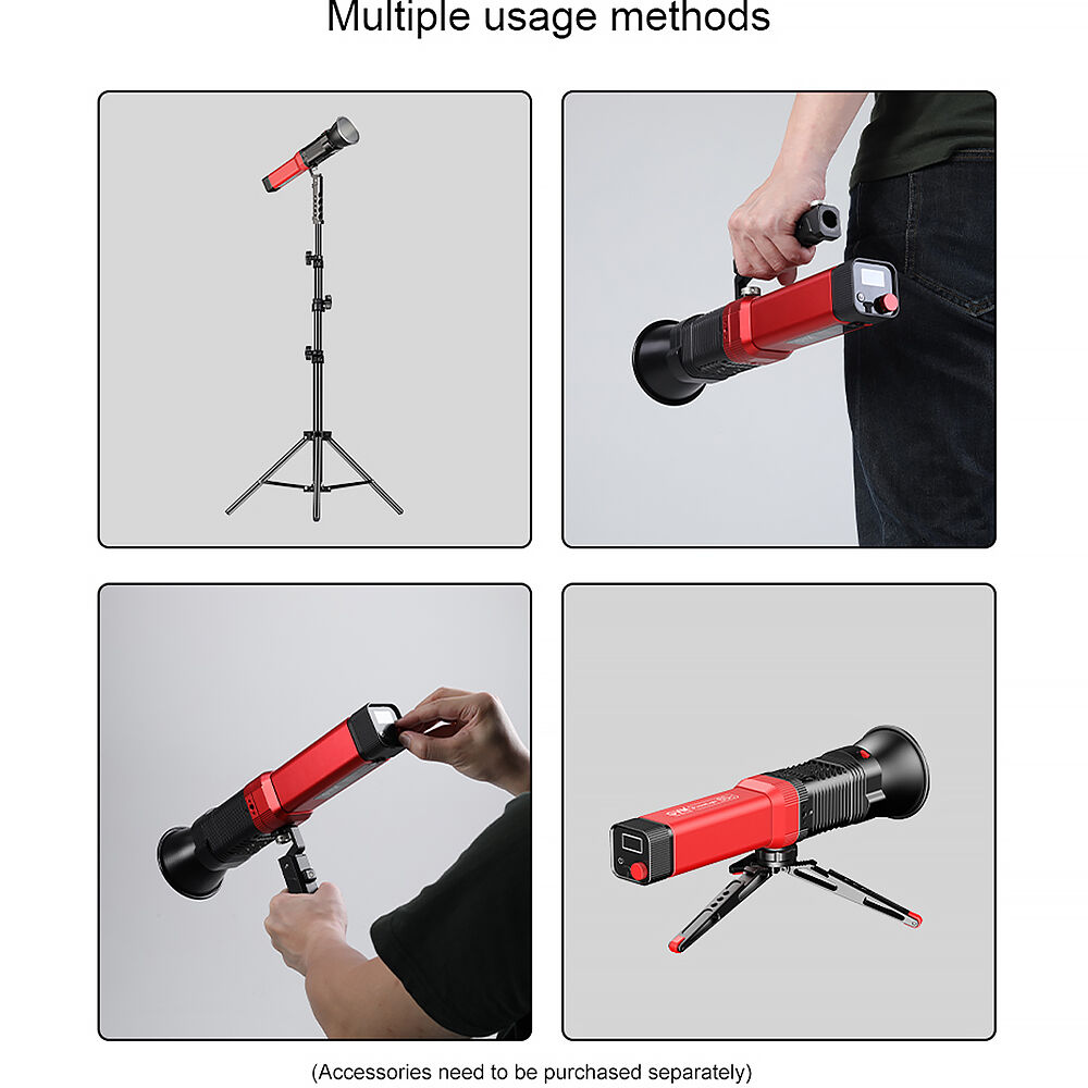 Add color and creativity to your video and photo productions with the PD60C RGB Pocket LED Monolight 3-Light Kit from GVM. This kit includes three PD60C portable and versatile fixtures that feature full RGB color control and CCT mode with a 2700 to 6800K CCT while allowing you to hold the lights in your hand, thanks to its included metal handles. More than just an RGB light with a compact design, the PD60C's app control and multiple lighting effects fit a wide range of video and photo projects. The high CRI rating of 97 allows you to capture accurate colors for faithful color results. Each 12.5 x 3 x 2.8" fixture weighs only 3.3 lb, making it a portable lighting solution that adapts to various environments. This kit includes essential accessories, including softboxes, barndoors, a zoom lens, and other modifiers to suit your different lighting requirements. GVM includes a carry bag, so you can easily store and transport the entire kit to your next shoot.