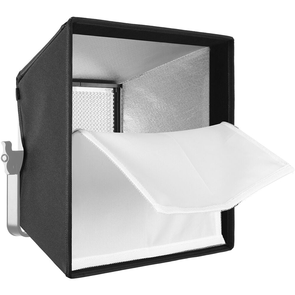 Using simple elastic straps instead of a speed ring, this 15 x 15.7" Softbox for 672S, MB832, 50RS, 520LS, 520S, and 1200D LED Panels from GVM softens the light quality of the bright LEDs, yielding lower contrast and open shadows. The softbox has a reflective silver interior to maximize output, and the front diffuser can be removed to offer contrast options. An optional fabric grid is available for directional control.