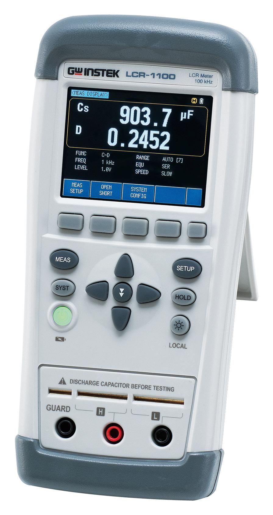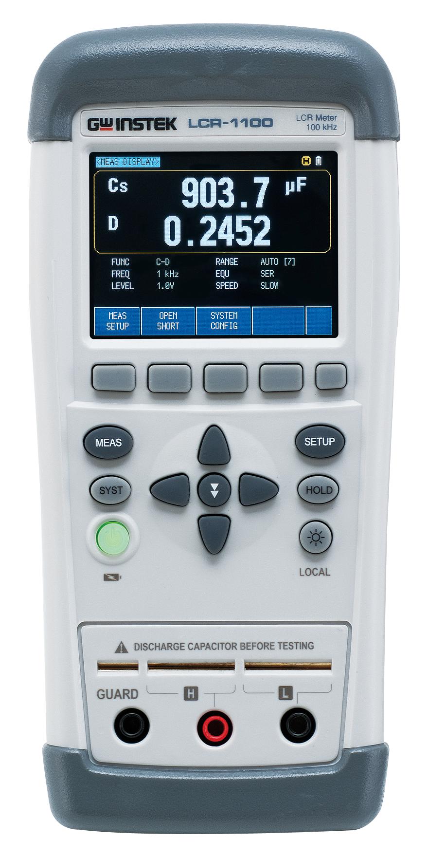 03ALCR11000S is a LCR-1100 hand-held LCR meter. The LCR-1100 provides a test frequency up to 100KHz. The series provides selectable test voltages (0.3/0.7/1.0Vrms) and equivalent circuits (series/parallel) to automatically measure capacitance, inductance, resistance, reactance, impedance, quality factor, loss factor, phase and DC resistance. The LCR-1000 series, with 50,000 display counts for both main and auxiliary parameters and a basic accuracy of 0.2%, supports 2-wire or 5-wire measurement. Furthermore, the series also provides the comparison function and data retention function to meet various test and measurement requirements for different types of components. The entire series is equipped with USB-HID and USB-VCOM interfaces. A simple and practical free PC software is provided and remote control commands (compatible with SCPI) are available for users to write their own personal software to meet the needs of data acquisition.
