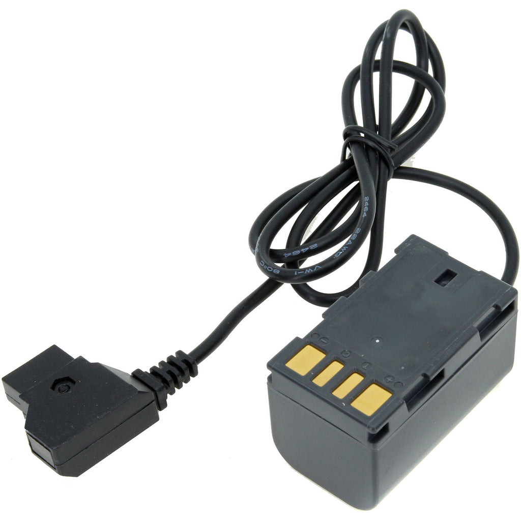 The GyroVu D-Tap to JVC BN-VF823 Dummy Battery Cable, 30" long, allows you to connect JVC camcorders that use the BN-VF823 battery to high-capacity power sources to run the camera for extended periods. The BN-VF823 dummy battery installs into the battery slot of the camcorder. The D-Tap end can be plugged into any brick battery or other power source that has a female D-Tap output connector.
