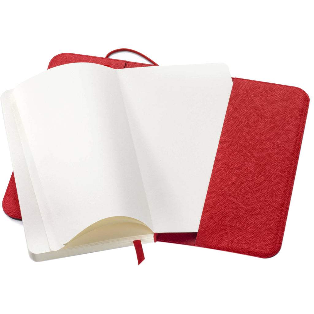 Draw, sketch, or write wherever you are with this 7.5 x 4.5" DiaryFlex Book from Hahnemühle. With black covers and a stylish red interior, this book has a portrait orientation and comes with 80 sheets of plain paper, for a total of 160 pages. The sheets are bound to each other but not to the cover, with two slip pockets on the inside being used to hold them in place; this setup allows you to replace the pages, once spent, with a separately available refill pack.