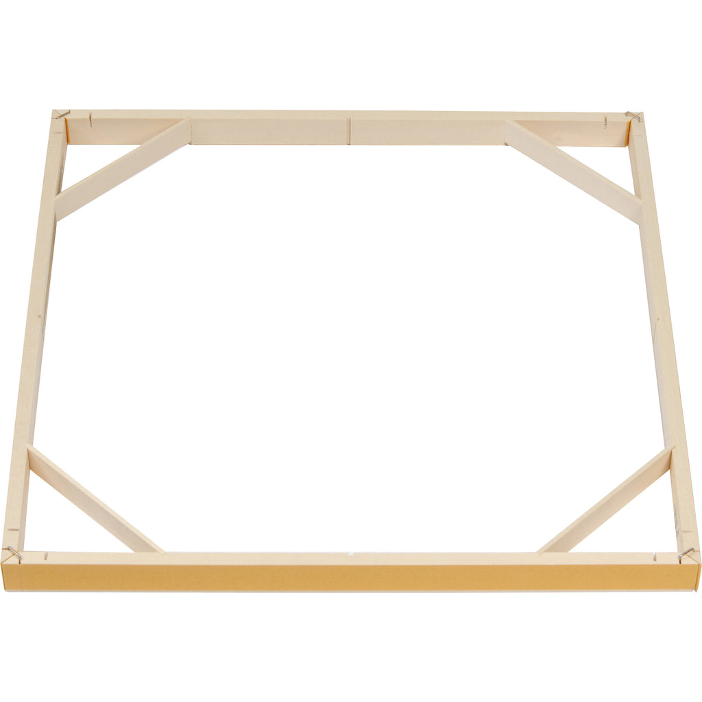 Once the frame has been constructed, the tension bars can be placed inside the corners of the frame. The tension bars and holding pins add tension and stability to the frame. All Standard Gallerie Wrap Stretcher Bars are 1.25" deep.