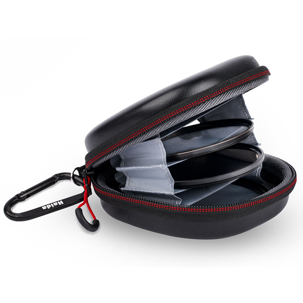 Assembled to help with the challenges presented by winter conditions when capturing landscapes and other outdoor shots, this 67mm Haida Winter Kit includes a 67mm NanoPro Black Mist 1/4 Filter, a 67mm NanoPro CPL filter, an Anti-Fog Belt, and a Filter Case that holds five filters (up to 82mm). The Anti-Fog Belt wraps around your lens and secures with hook-and-loop fasteners. It fights off dew and condensation to keep your lens clear and crisp.