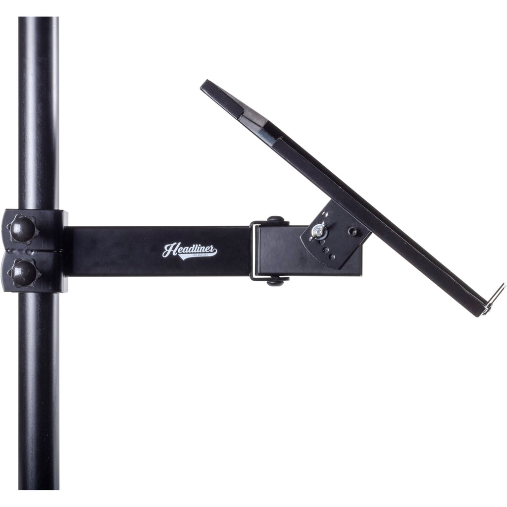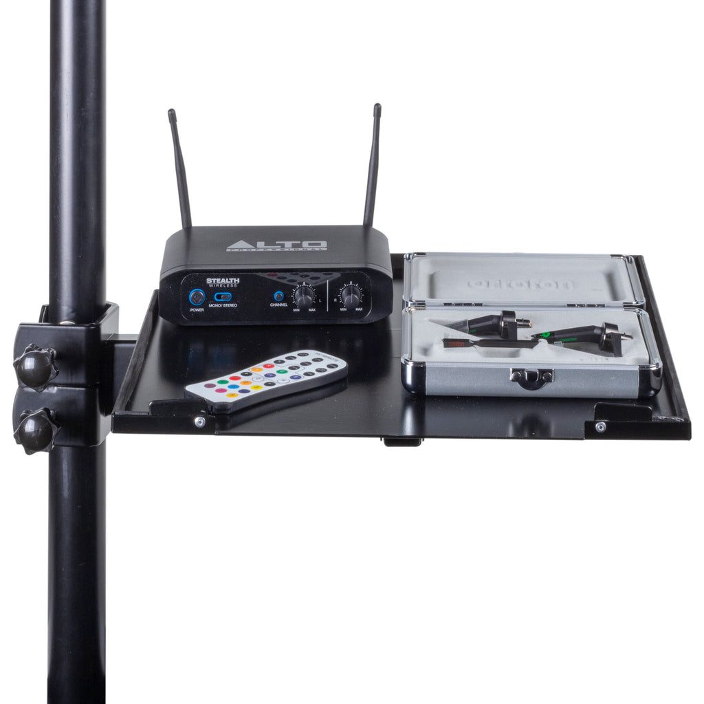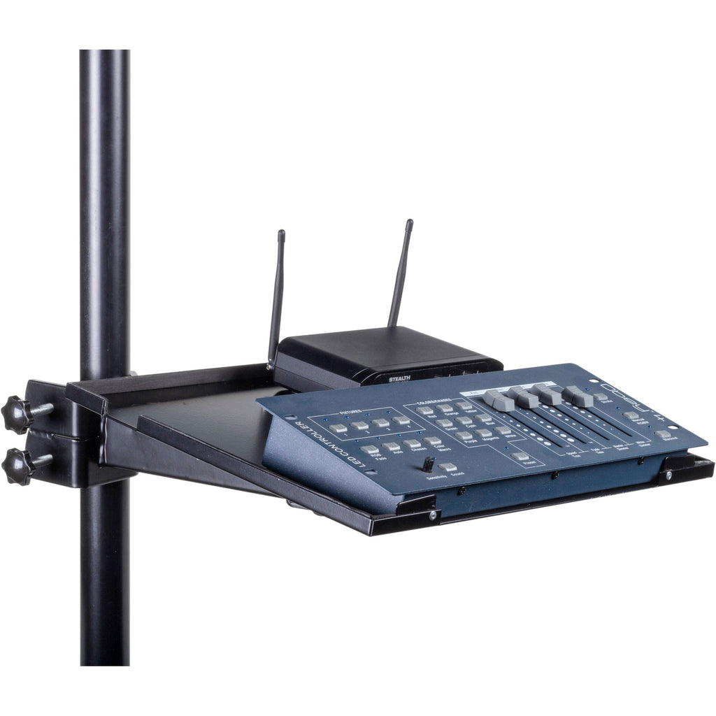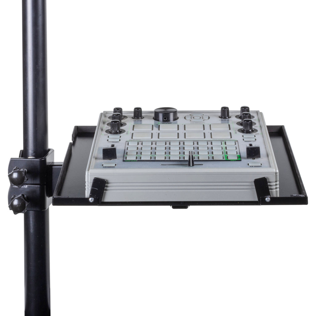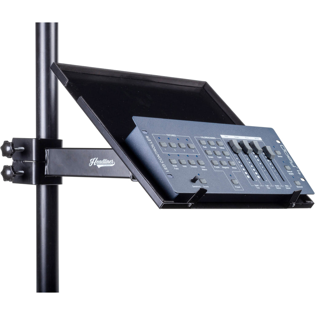 Heavy-Duty Shelf for PerformersMounts to Speaker, Light & Mic StandsWorks with Truss or any Tube up to 2"12.5 x 14" Tray Dimensions The Headliner Accessory Tray is a heavy-duty shelf that mounts to speaker stands, light stands, mic stands, truss, or any sturdy pole up to 2" in diameter. The tray is well suited for performers and creators looking to keep their smaller gear within reach. Keep your personal monitoring mixer, wireless mic receiver, sampler, effects processor, or a 13" laptop close at hand.