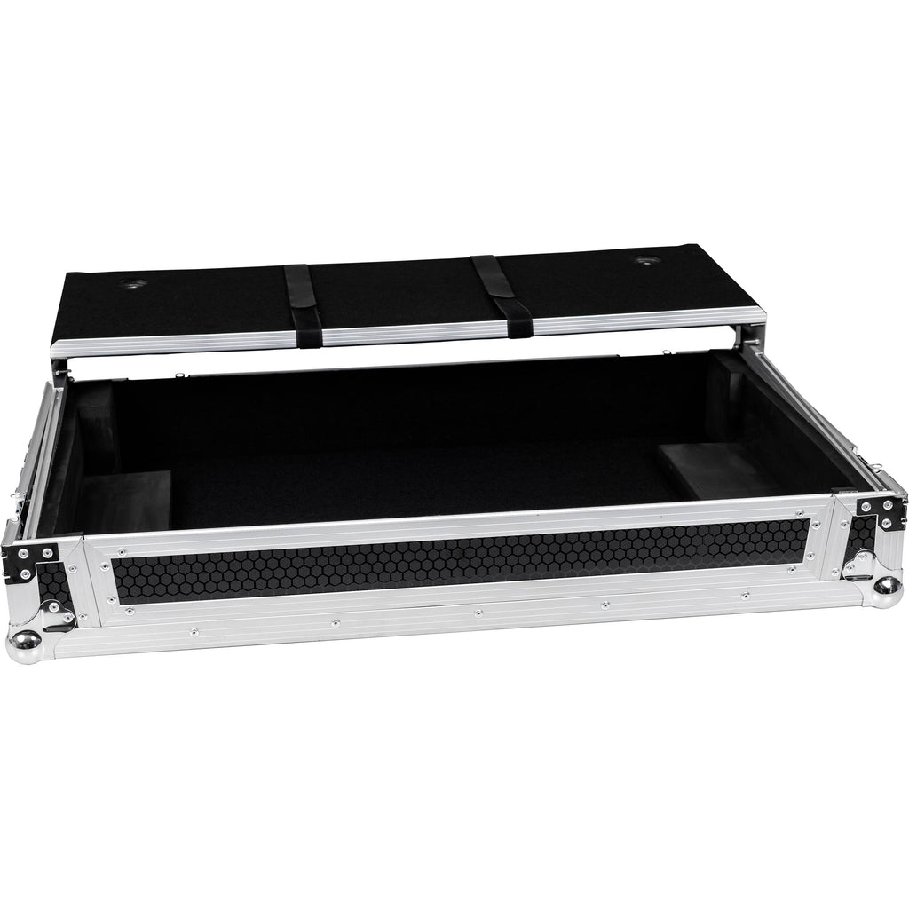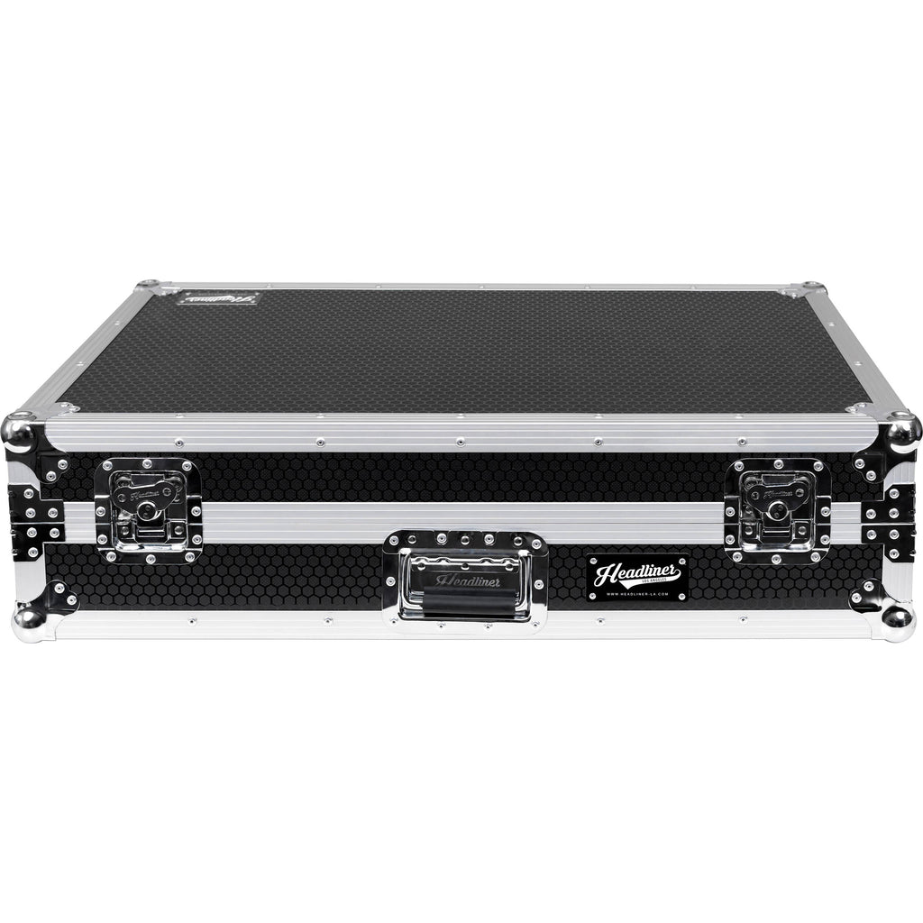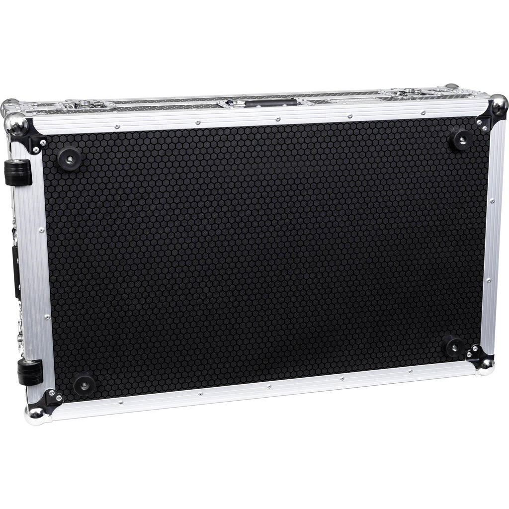 Give your mixer investment the protection it deserves with the Flight Case with Laptop Platform and Wheels for RANE DJ FOUR from Headliner. Styled in black with silver hardware and custom built to house the RANE DJ FOUR mixer, the case is constructed with 3/8" plywood with a rugged hexagon laminate exterior and a 1" high-density foam lined interior to snugly cushion the mixer. The locking tongue-and-groove lid is simple to secure, and the interior has plenty of space for cable management. The case includes a locking glide-top platform with hook-and-loop straps to keep your computer securely in place during your gig. Heavy-duty wheels make it easy to transport the mixer. A thoroughly professional solution, the flight case features stackable steel ball corners, aluminum profiles, recessed spring-loaded padded handles, and butterfly latches with padlock staples.