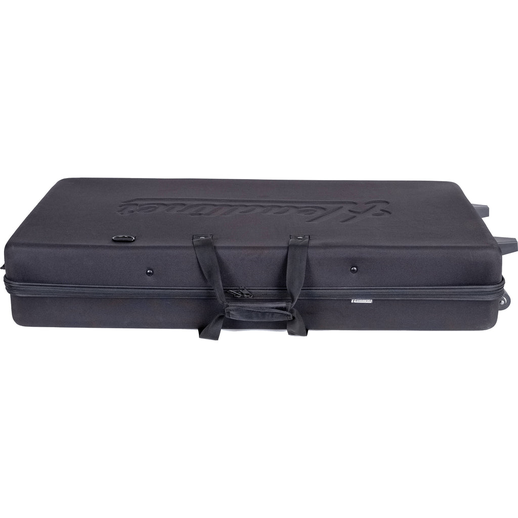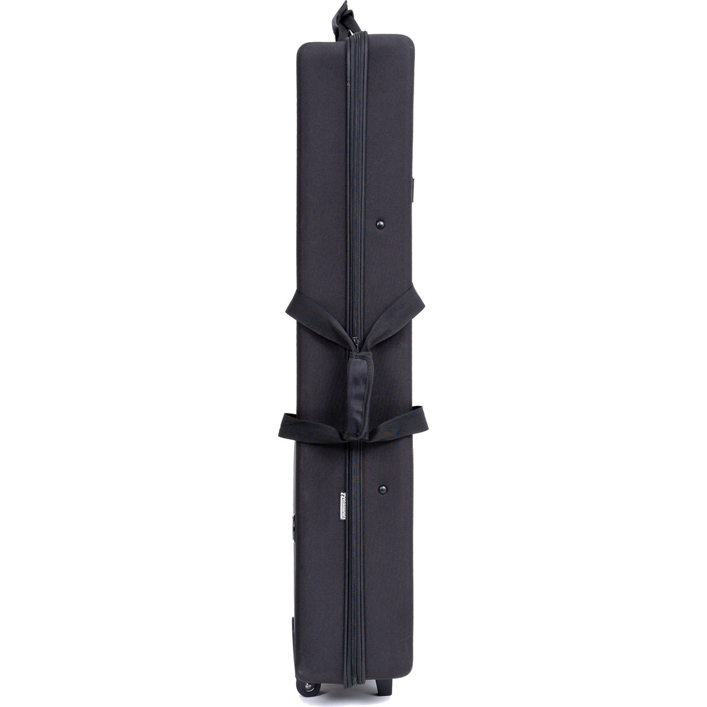 Smooth rolling wheels allow you to comfortably transport your all-in-one system, while hard plastic feet let you stand the case, so you don't need to lay it down when letting go of the handle. Hefty zippers provide a reliable closure for your case, and transport is easy with a comfortable carry handle and a removable shoulder strap, complete with metal hooks and latches.