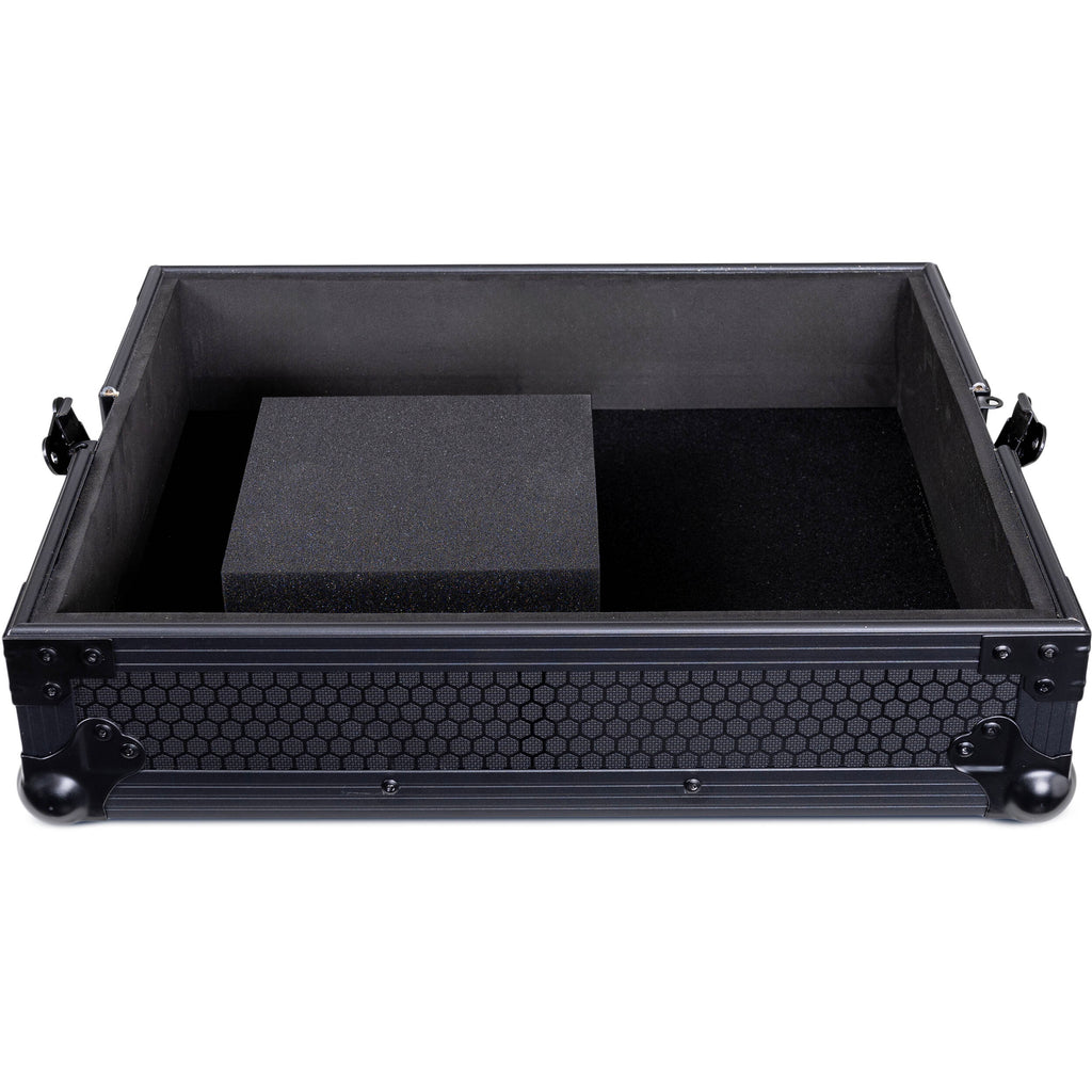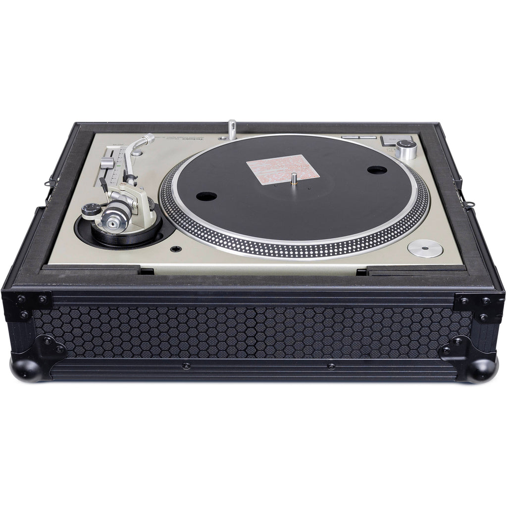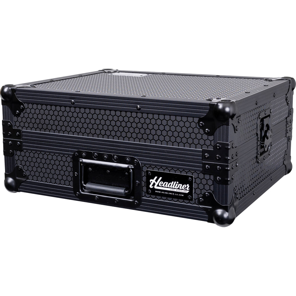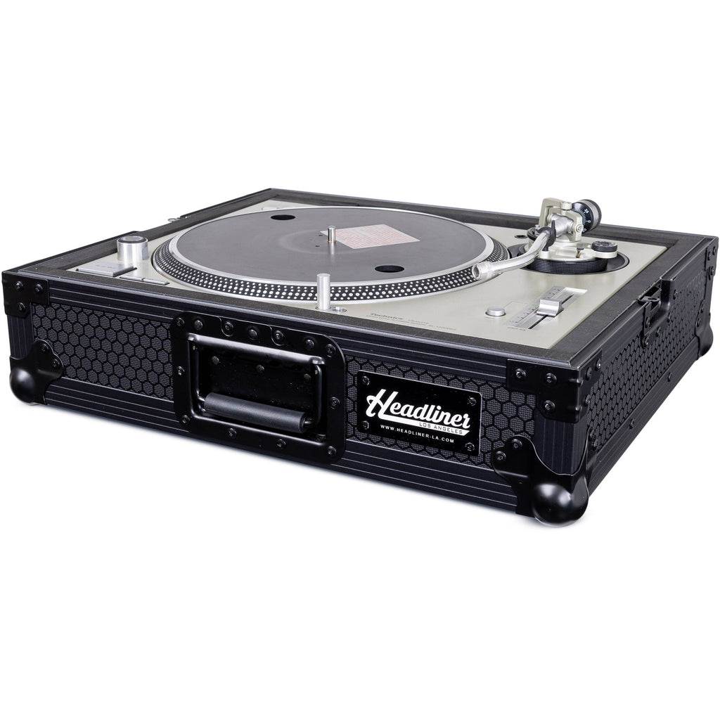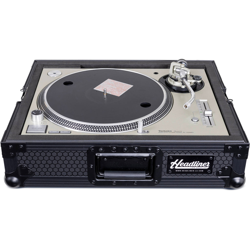 Protect your turntable from on-the-road wear and tear with the pitch black Headliner Turntable Flight Case, a customizable road case that fits most standard DJ turntables from Technics, Pioneer, Reloop, Stanton, Vestax, and more. The case has a durable plywood exterior with hexagon laminate and a high-density foam interior to cushion and secure the unit during transport.