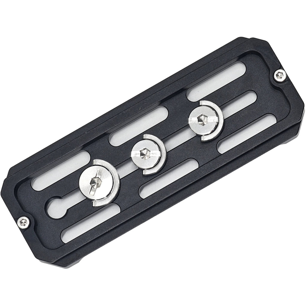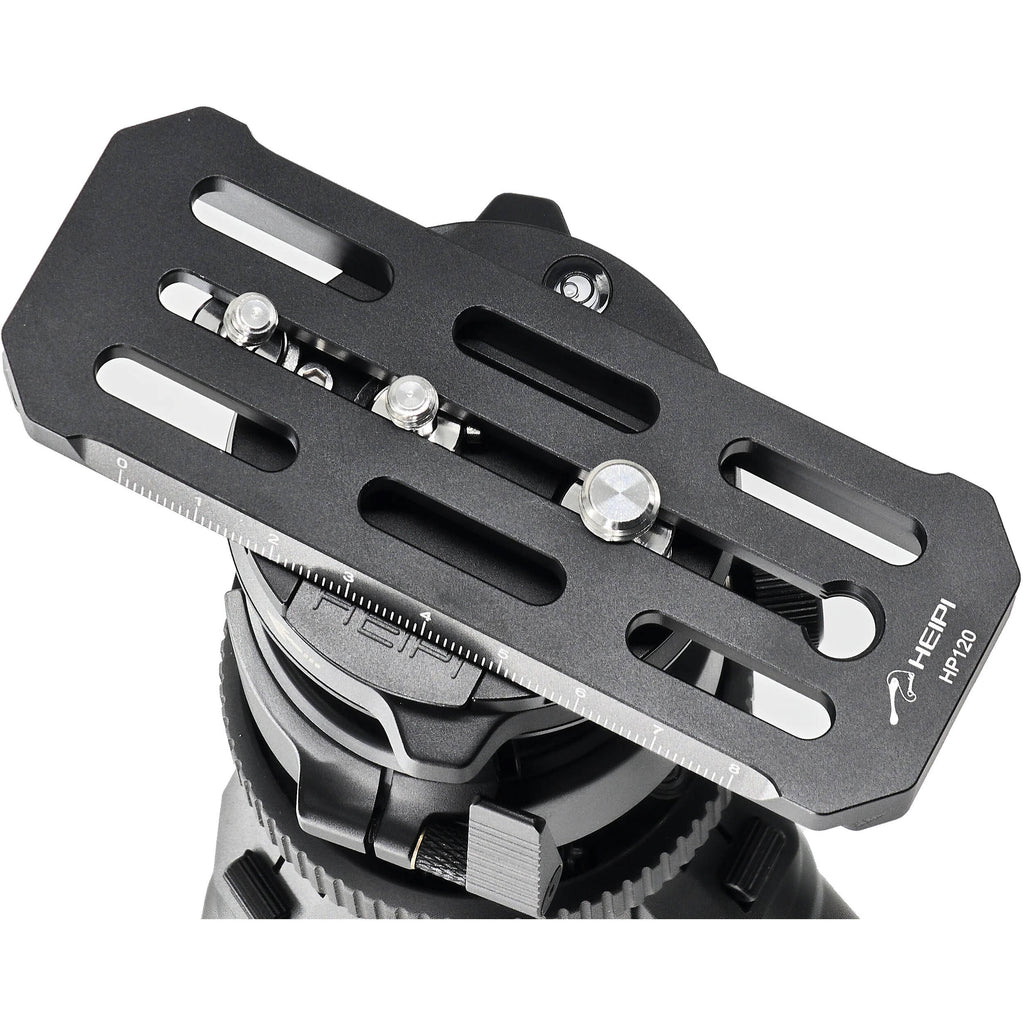 This HP120 Quick Release Plate from Heipi is a great mounting solution for those using telephoto lenses. Three mounting screws, one 3/8"-16 and two 1/4"-20, along with its Arca-type quick release design make it widely compatible. The hollowed out, aluminum alloy construction saves weight while also making it more convenient when attaching or removing equipment. Two backstop screws add security and the measurement scale along the side helps ensure exact positioning.