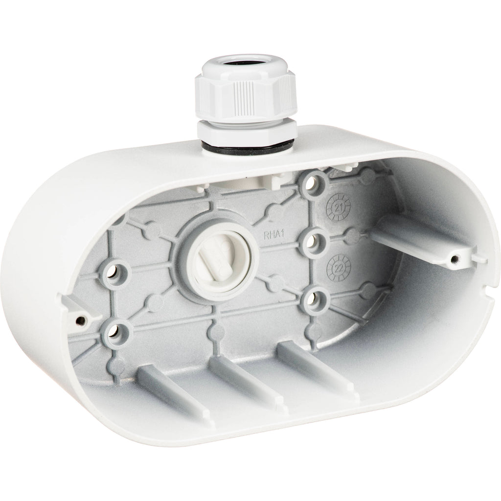 The CB-6D is a junction box designed for Hikvision's DS-2CD6D52G0-IHS and DS-2CD6D82G0-IHS dual-sensor PanoVU cameras.