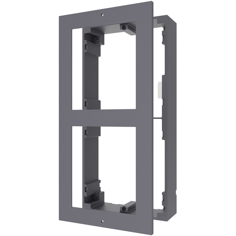 The DS-KD-ACW2 for Hikvision is an aviation-grade aluminum surface mount accessory that is designed to support two modular door station modules.