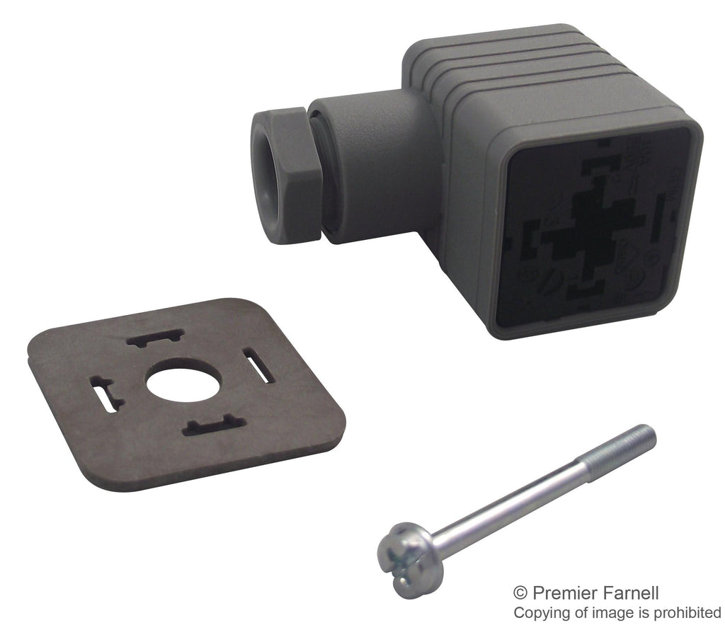 HIRSCHMANN GDM 3016 GR + GDM 3-21 EPDM Rectangular Power Connector, Solenoid, M16, Screw, Receptacle, 3 Contacts, Socket