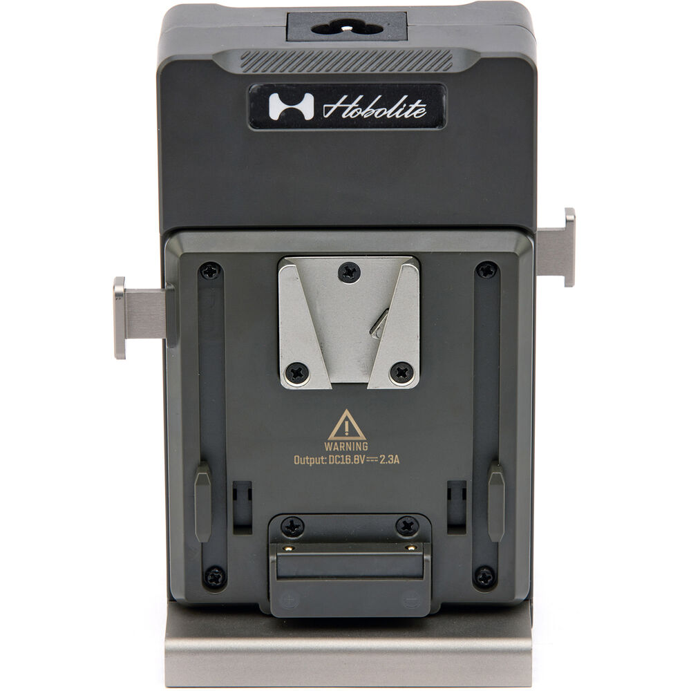When connected to a wall outlet, the Dual V-Mount Battery Charger from Hobolite provides simultaneous charging for two separately available 95Wh V-mount batteries. This portable 6.6 x 4.9 x 3.4" accessory ensures consistent and reliable charging of the batteries.