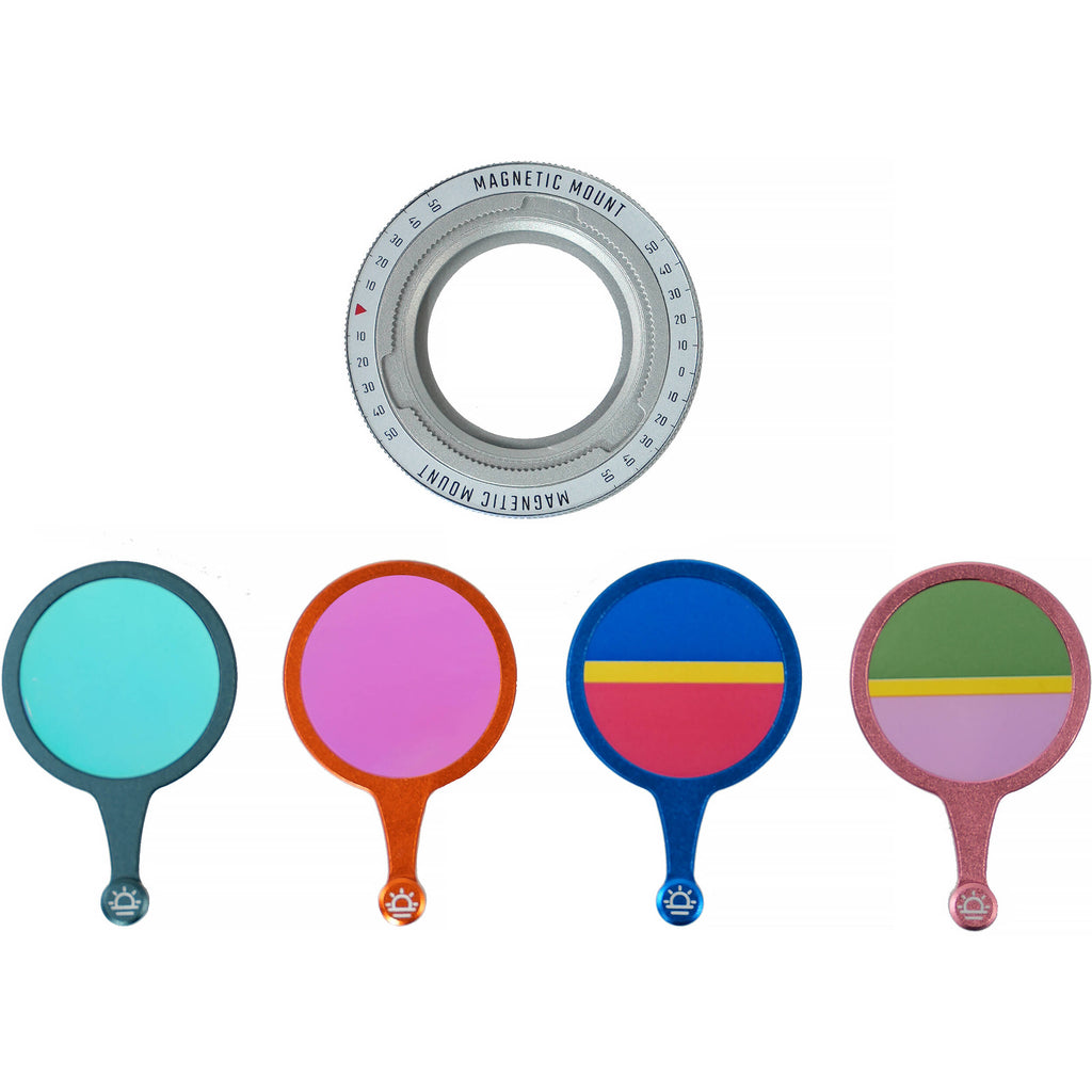 Designed to be used with the separately available Micro LED light, this Light Modifier Gel Kit from Hobolite expands your lighting design capabilities by providing accessories that allow for creative color effects. The included micro adapter ring allows you to attach the separately available magic lens and 28mm Fresnel lens to your Micro light. The four unique gel filter colors included in this kit are Golden Hour, Blue Hour, Spring Pastel, and Aurora.
