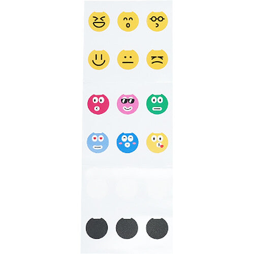 Customize the look of your LARK M2 transmitters with this Hollyland Transmitter Sticker Sheet. The sheet features 18 total stickers, 12 with multicolored faces, three white, and three black. They are designed to fit on the flat surface of each transmitter.