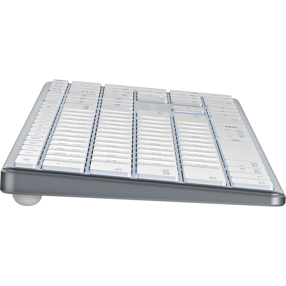 Inspired by Apple's design aesthetic, the HyperSpace features an aluminum construction and an ergonomic tilt that provides comfortable typing. Adjustable backlit keys provide accurate typing, day or night. Integrated function and media control keys allow you to quickly make adjustments. You can pair this keyboard with up to three devices and switch between them at the touch of a button. Connect a power source to the USB-C port using the included cable to quickly charge the keyboard.