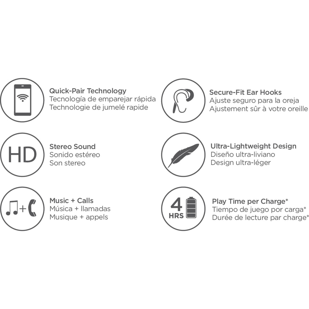 Workout without the wires when you use the Sport X2 True Wireless In-Ear Sport Headphones from HyperGear. Supporting Bluetooth and Quick Pair technologies, the Sport X2 are designed for easy connection to your mobile device, letting you quickly and conveniently stream music to motivate you during your run or gym routine. The physical construction of the Sport X2 is also exercise-friendly, with a comfortable, lightweight design and ear hooks to keep them in place. With up to 4 hours of playback on a full charge, the Sport X2 can last for multiple workouts before needing a recharge.