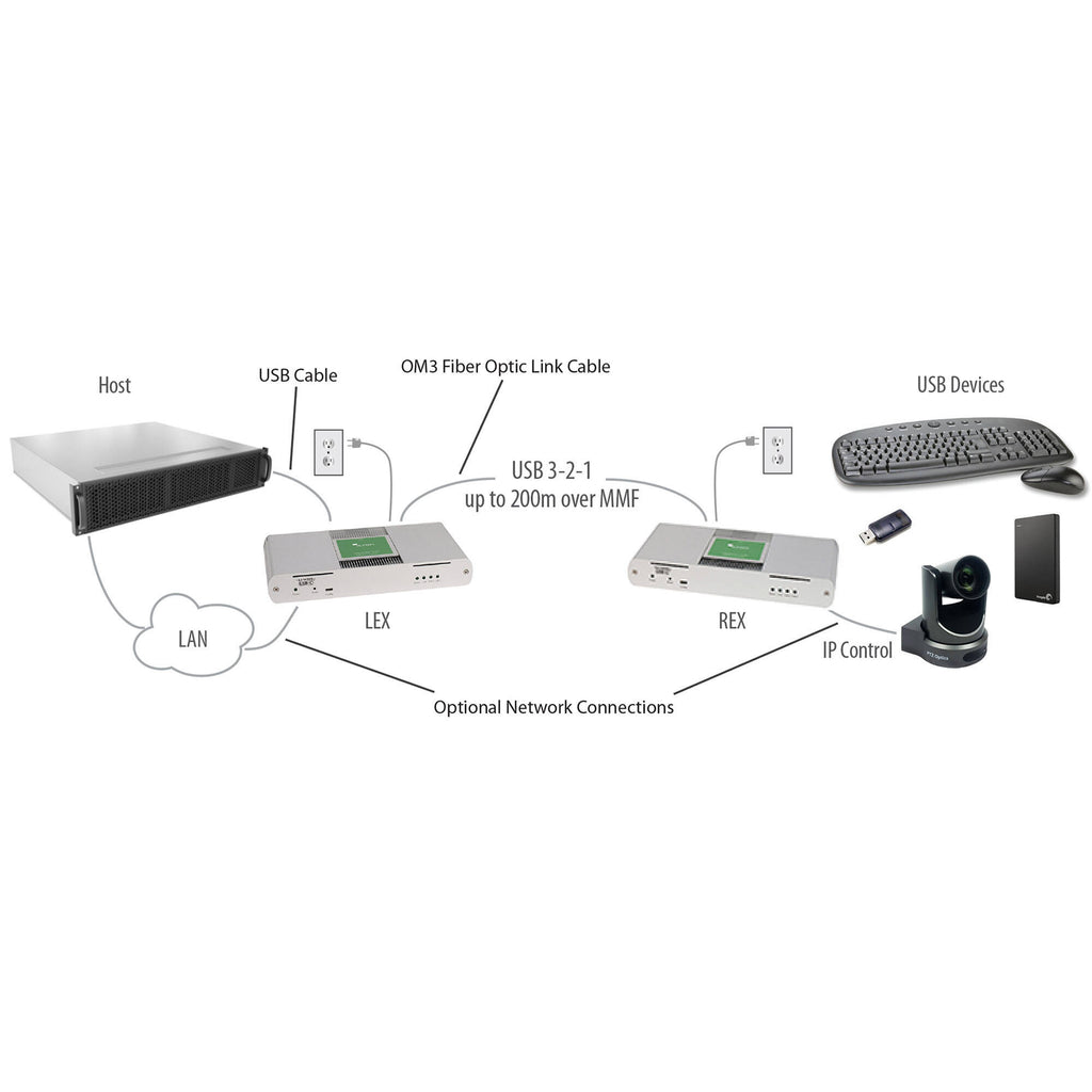 Icron Four-Port USB 3-2-1 Raven 3124 Extender System over Multimode Fiber (656')