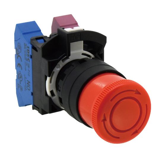 This is a HW1B-V3P02R E-STOP SW , DPST-NC, 10A, 110VAC, PANEL product from IDEC with the model number HW1B-V3P02R