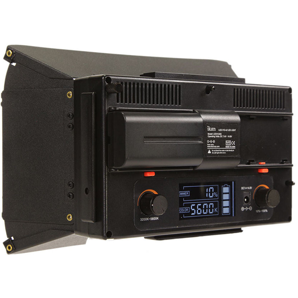 The ikan iLED312-v2 On-Camera Bi-Color LED Light with Digital Display is a compact battery powered daylight/tungsten balanced on camera light. It features a continuously variable color temperature between 3200 tungsten and 5600K daylight, and a built-in variable dimmer that can dim the lights output from 100 to 10%. Built into the light is an LCD display panel that shows a digital readout of the brightness level, color temperature of the light and features a battery gauge so you know how much power you have left.