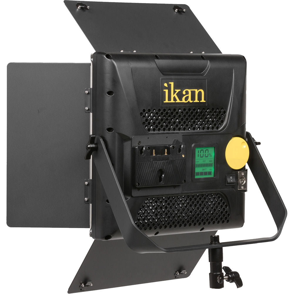 The Lyra LB10 Bi-Color Soft Panel 1 x 1 Studio and Field LED Light from ikan is built into a heavy-duty molded plastic chassis providing a lightweight yet strong variable color fixture with enhanced features such as 100-10% flicker-free dimming , LCD display, and an included wireless remote to adjust color and light intensity. It features an integrated 1/2 stop diffuser for extra softness, while its 900 LEDs produce a 110° beam spread with a high CRI of 96 and a TLCI of 98 for precise color rendering. The fixture produces a soft single-source shadow pattern owing to the integrated diffusion.