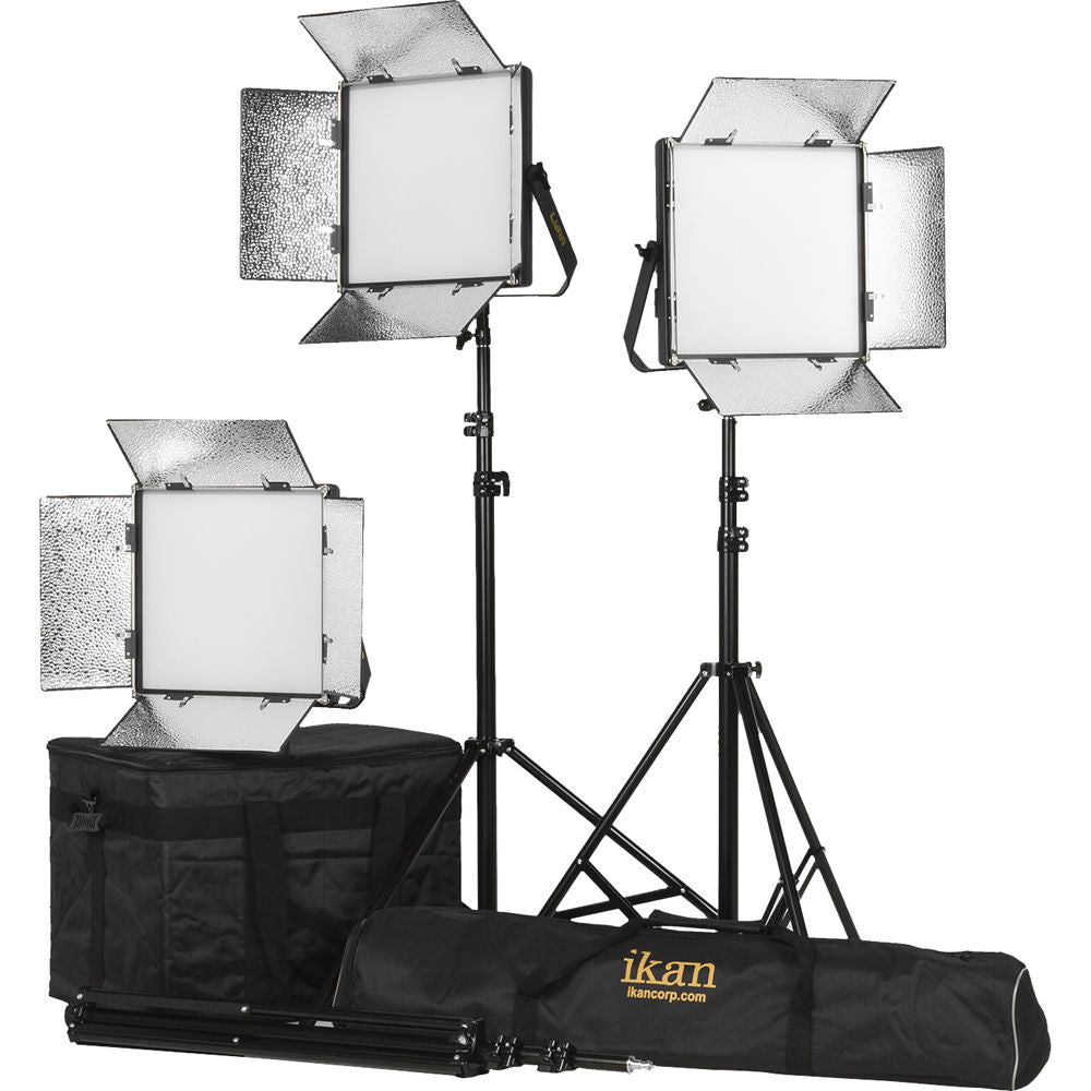 The Lyra 1 x 1 Bi-Color 3-Point Soft Panel LED Light Kit was put together by ikan to offer image-makers a core lighting kit for interviews and ENG on location or in the studio. The kit includes 3 Lyra 3200-5600K Bi-Color Soft Panels, each with a V-Mount and Gold Mount battery plate, multi-voltage power supply with cable, wireless remote control and a yoke mount that accepts 5/8" Baby stands and 1-1/8" Junior stands. A case for the lights and a stand case are also included.