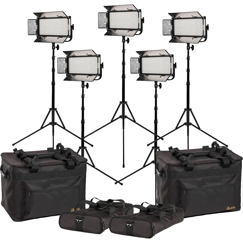 Ready for the road or equally effective in the studio, the Mylo MB8 Half x 1 Bi-Color LED 5-Point Light Kit from ikan offers photographers and videographers a highly flexible system with adjustable color temperature from 3200 to 5600K along multi-voltage AC or battery power options. The kit includes 5 Mylo MB8 Bi-Color Light Panels, each with an AC power supply 2 Sony L-style batteries, a dual charger, yoke mount, a neutral diffusion filter, and a 6' light stand. Also included are 2 stand bags and 2 light kit bags.