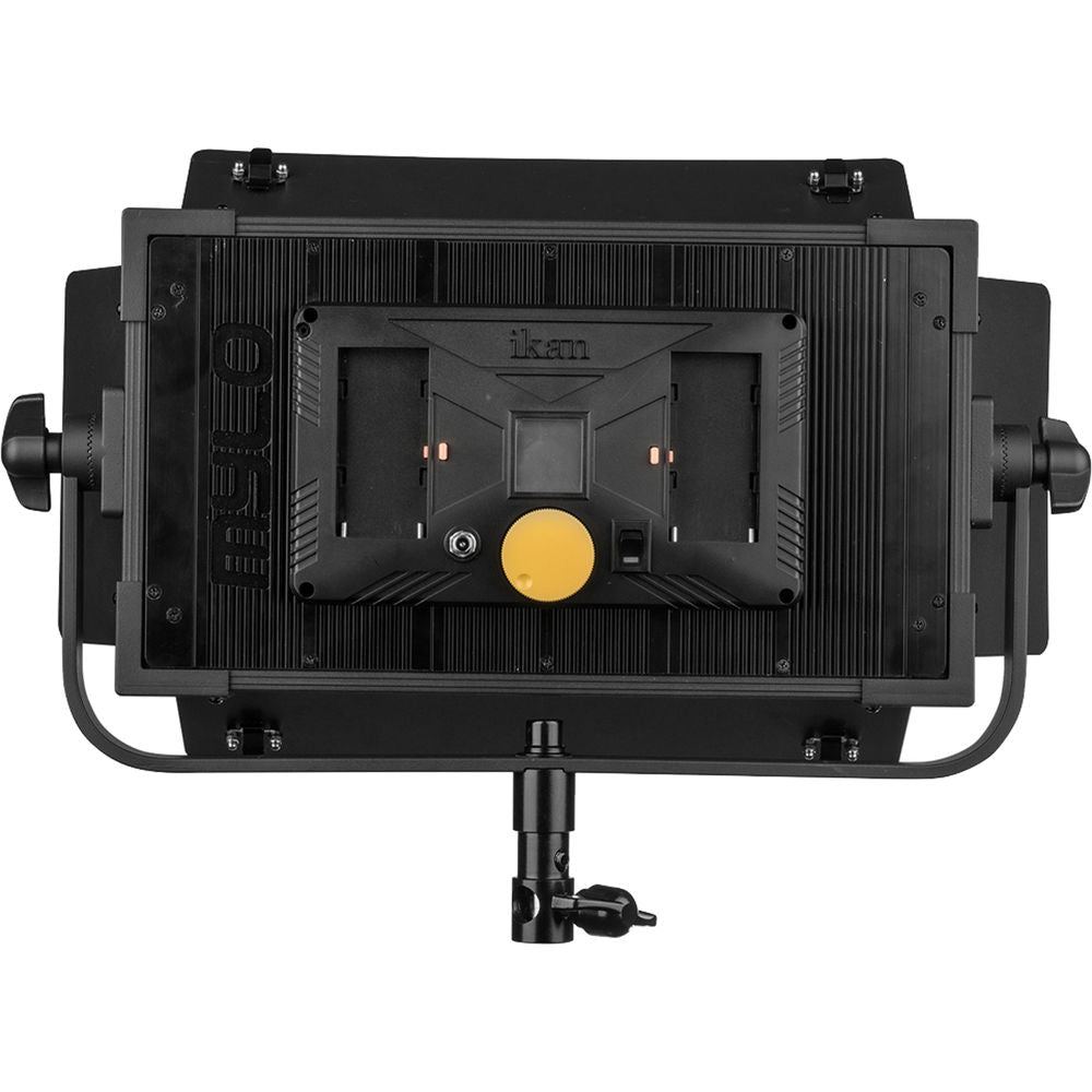 The Mylo Soft Bi-Color Half x 1 has a 110-degree beam angle for wide coverage that can be controlled or tweaked with the high-output, textured silver 4-way barndoors. The light ships with a 100-240 VAC power supply for worldwide use. For image makers who shoot far afield without access to mains current, ikan includes 2 NP-F750L batteries and a dual charger to power them.