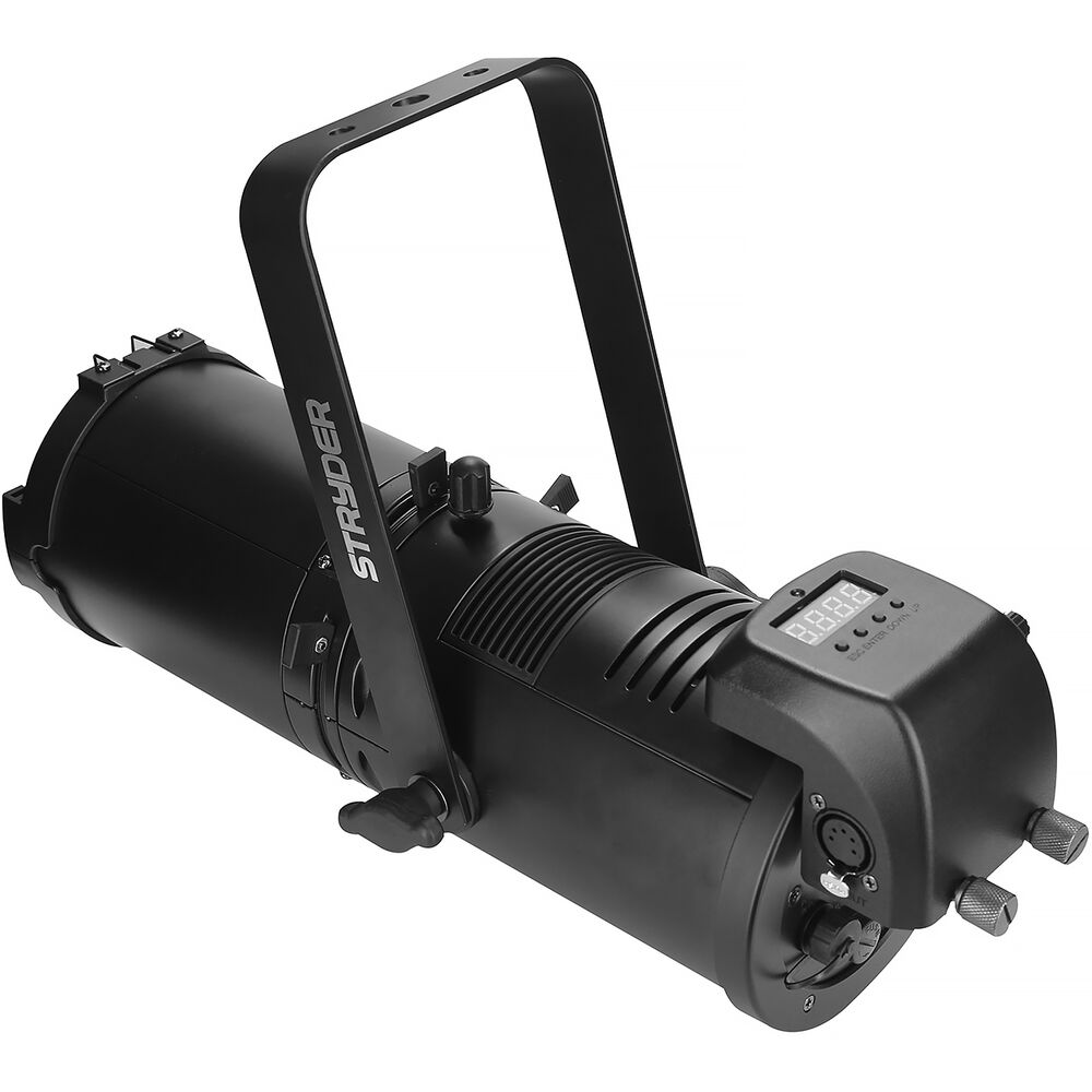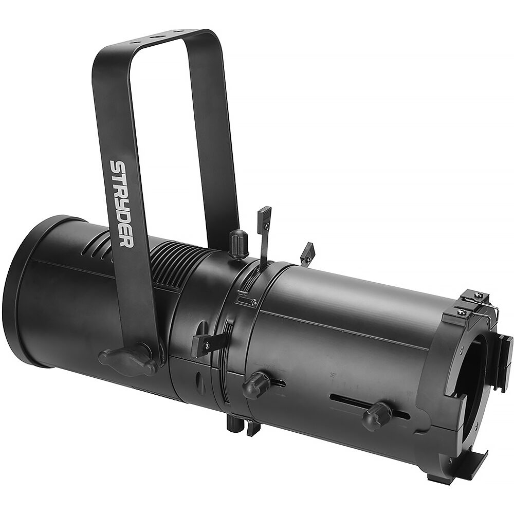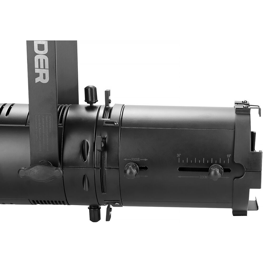 The SE65Z-CW Stryder 65W Mini Zoom LED Ellipsoidal is an ultra-compact ellipsoidal LED fixture with a cool-white 5600K color temperature, DMX control, and flicker-free operation. It is primarily designed for use in a theatrical lighting grid, but it can also be used in film and video productions. It can be zoomed from 19 to 36° to control the beam angle.
