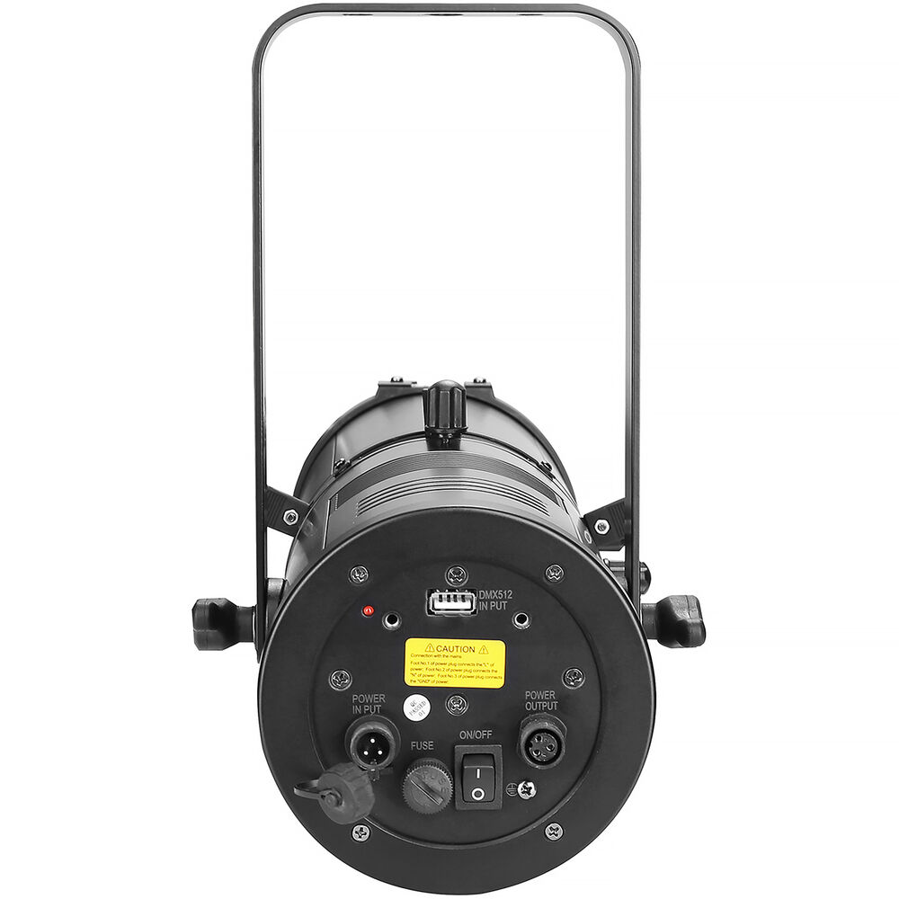 Dimming and strobe are remotely controllable via DMX, and zoom and focus adjustment allow you to tune the light's coverage manually. The included four-flag shutter provides additional light refinement. Included with the fixture is a gel frame for customizing the light's color, a gobo holder for adding light patterns, and a yoke for mounting onto a lighting grid.
