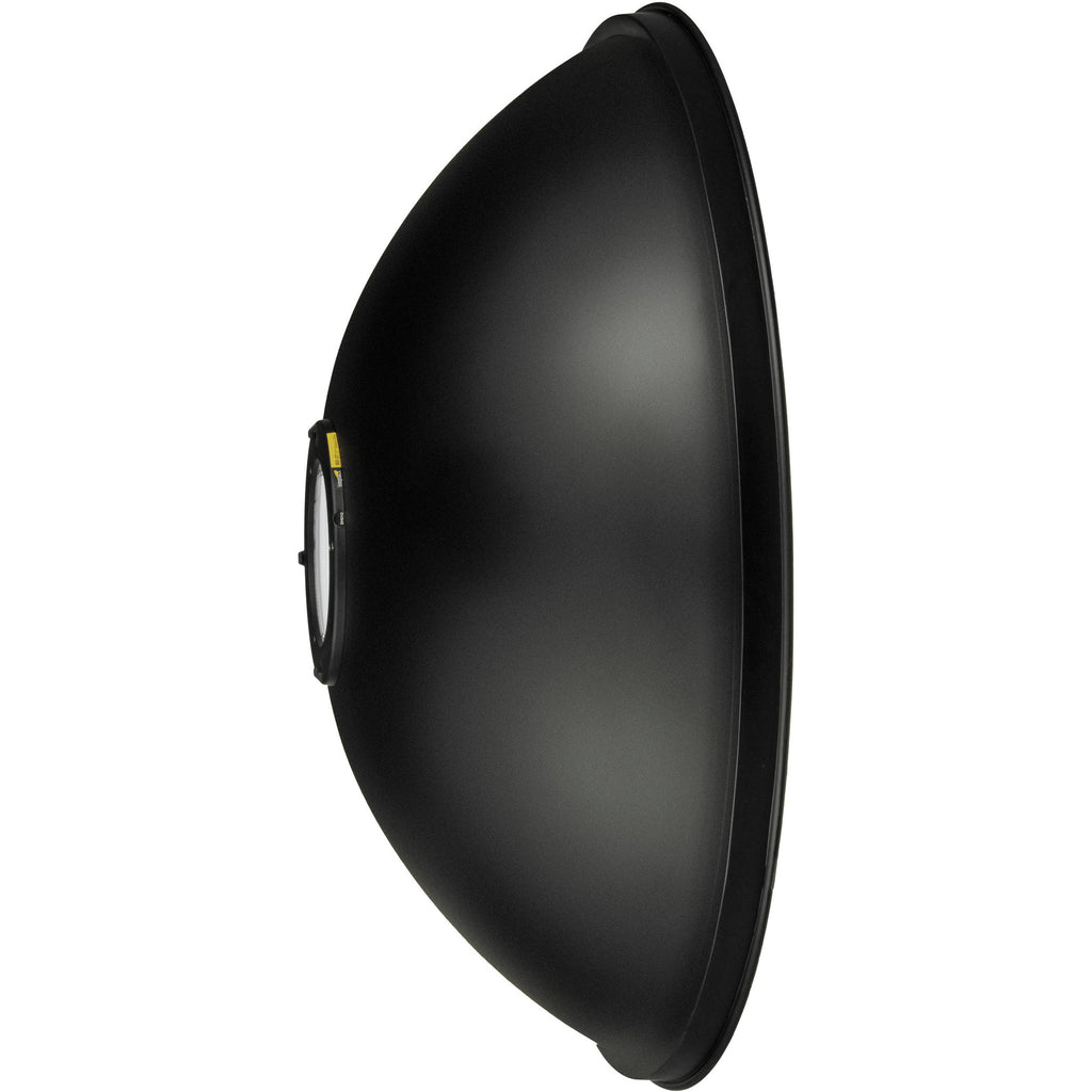 The beauty dish reflector is a legendary light shaping tool popularized by fashion and portrait photographers. This Impact 27" Beauty Dish Reflector lives up to its potential by offering a bridge between softboxes and umbrellas that yields a soft but crisp light with snappy contrast and a textural quality that flatters makeup on models and accentuates character in portrait subjects. The secret is a built-in deflector that bounces the flash's direct output backwards, filling the shallow dish and casting a wide beam of soft light forward. The Beauty Dish fits most major brands with the separate purchase of an adapter.