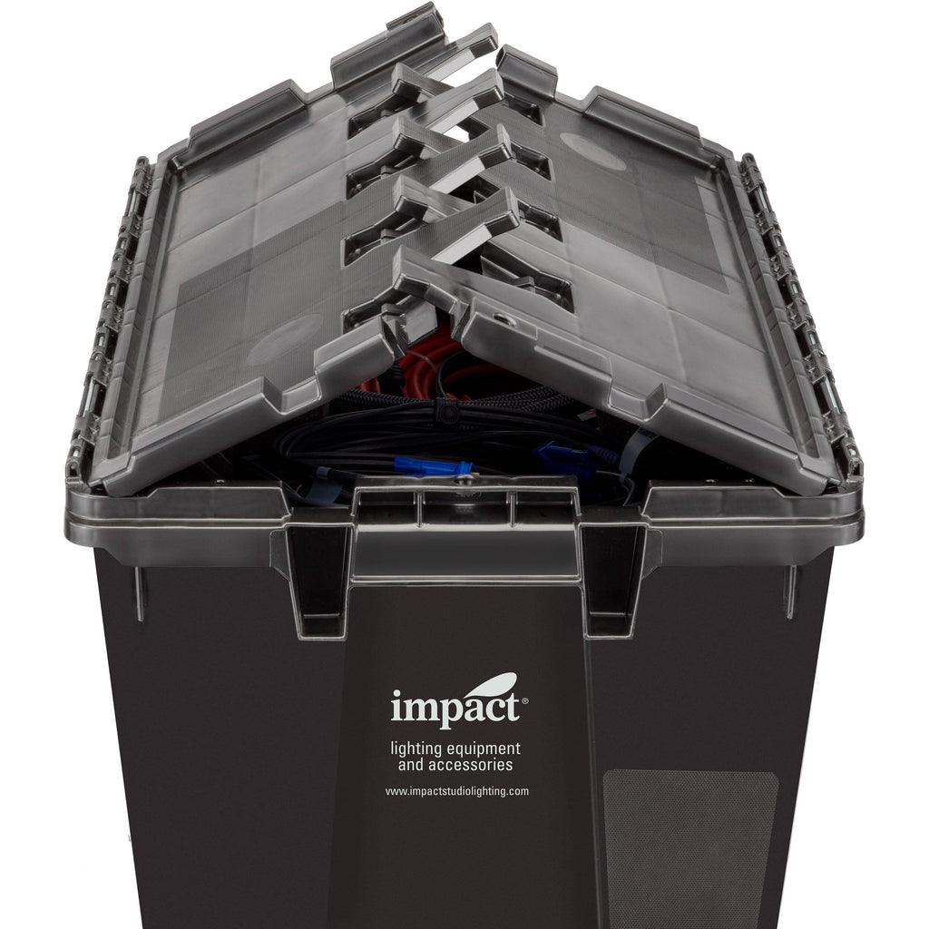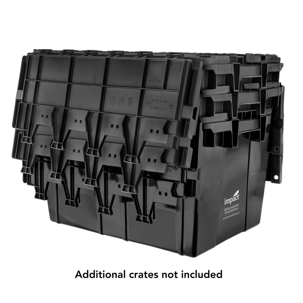 The CC-210 Cable Crate with Lid from Impact is a safe and secure storage crate to protect your cables, photo and video equipment, lights, and stands. It has two hinged fold-over lids that clasp together, forming a solid, interlaced top cover. The attached lids provide an indented and raised lip for easy stacking and prevent unwanted movement when storing and transporting the crates. Security holes allow you to loop through zip ties or cable locks to keep the lid shut tight and make the crate tamper-resistant for shipping and safe storage. The tough molded plastic keeps gear safe and sound. Label areas provide space to stick on identification.