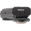 | Indicators and Controls | LCD screen display: Channel indicator, Power column, Modeling light column, Group indicators, Lock-out mode, TTL mode, EV Adjustment, Manual mode, Battery icon, CELL icon, HSS icon, SCS icon, Modeling light output level Buttons & Ports: Group buttons, Status LED, MENU button, MODEL button, ENTER button [+] and [-] buttons, CELL button, TEST button, CH/MASTER button, PRO. button, Mini-USB port, Power switch, Locking wheel, Mounting foot, Battery compartment, PC.SYNC ports |