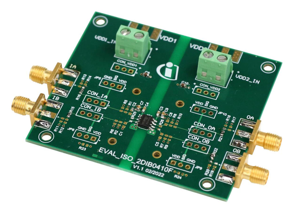 EVALISO2DIB0410FTOBO1 is an evaluation board for Infineon ISOFACE� dual-channel digital isolators. Isolation provides safety in HV applications and improves electrical noise immunity. To meet the continually growing requirements for isolation products, Infineon Technologies offers ISOFACE� dual-channel digital isolators with the highest robustness, most accurate timing performance and lowest power consumption. This product family, based on coreless transformer (CT) technology, uses two coils stacked on top of each other with SiO2 as insulation material in between. The target applications are DC-DC bricks in telecom and server power supply systems, high-side floating PWM signal transfer for GaN with integrated power stage (GaN-IPS) and isolated UART and CAN communication.