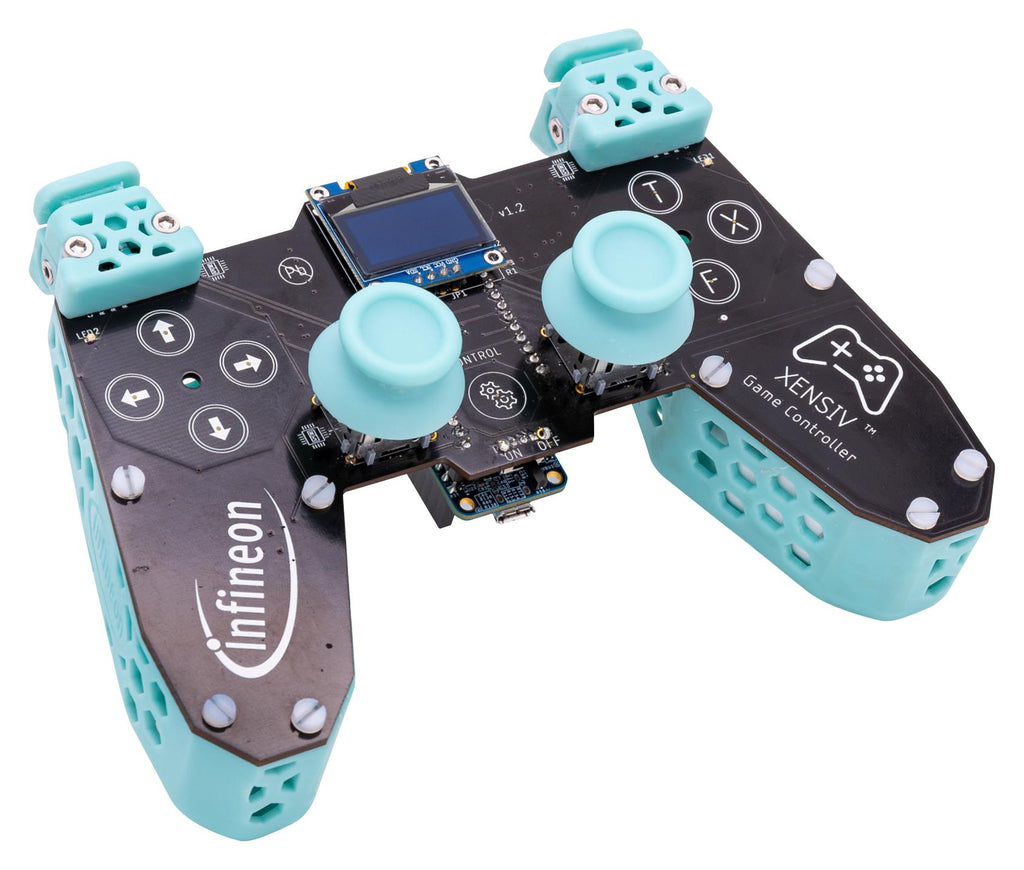 GAMECONTROLLERTOBO1 is an XENSIV� - Bluetooth® game controller featuring a unique gaming experience with XENSIV�, CAPSENSE�, SPIDER+ and PSoC�6 BLE technology. The XENSIV� Bluetooth® game controller integrates advanced Infineon products in an innovative design. Leveraging XENSIV� magnetic position sensors, the joysticks deliver exceptional precision without succumbing to sensor drift. XENSIV� switch triggers, CAPSENSE� buttons, CAPSENSE� presence detection, and a SPIDER+ rumble driver are all seamlessly integrated with the PSoC�6 BLE microcontroller to implement a low power, plug & play game controller. Suitable for game controller for gaming, control of industrial machinery.