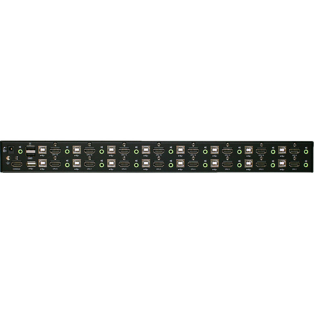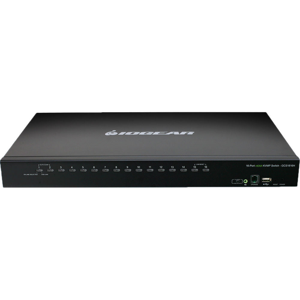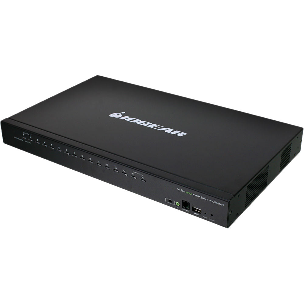 Control up to 16 computers using a single HDMI monitor, keyboard, and mouse with the 16-Port USB HDMI KVMP Switch from IOGEAR . Boasting 16 HDMI inputs and capable of video resolution up to 1920 x 1200, the 16-port switch supports 2.1 stereo surround audio, and it allows you to control up to 256 computers by cascading 2 levels of the switch.