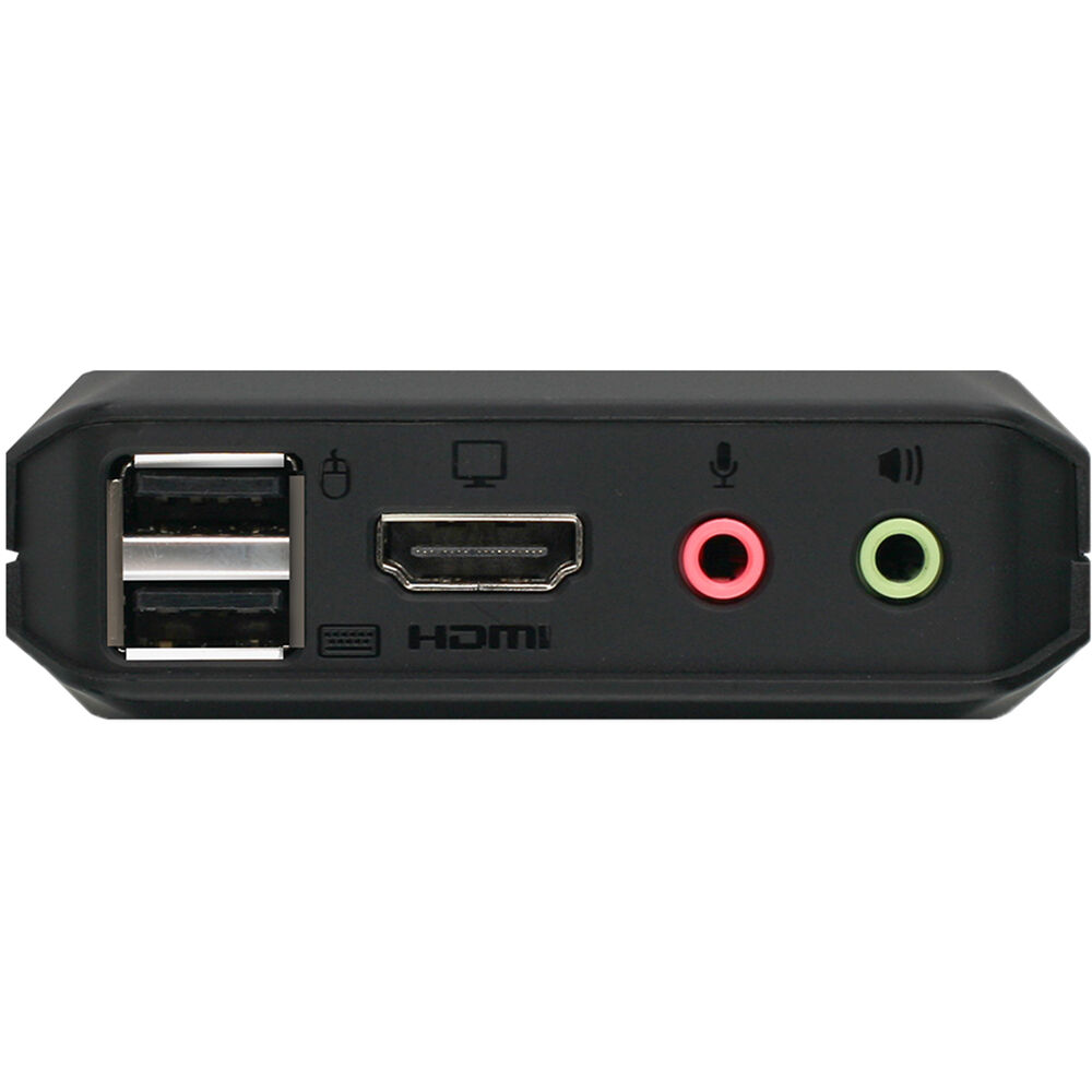 Designed to support two systems, the KVM supports a wide range of setups with two sets of integrated cables giving you 48-inches of length and include HDMI, USB Type-A, 3.5mm microphone, and 3.5mm audio-out connectors. A dedicated remote switch button makes swapping between each system quick and easy and LED status indicators tell you which system you are currently controlling. Dual USB 2.0 Type-A inputs support a mouse and keyboard setup while the HDMI port enables you to use a display sporting up to 4K (4096 x 2160) resolution and 60 Hz refresh rate. Dual 3.5mm audio jacks support audio-out and microphones, allowing you to take part in conference calls or listen to your favorite media.