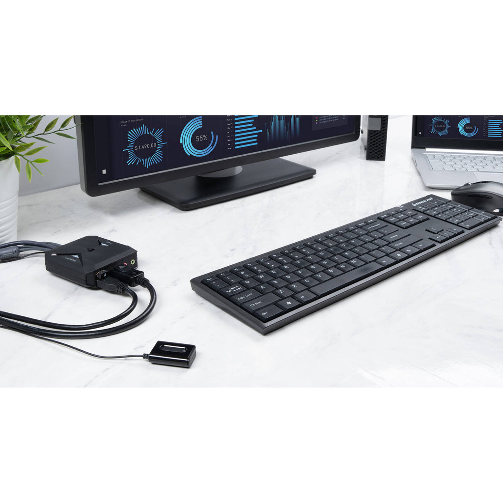 Designed for those who need to quickly swap between multiple systems, the IOGEAR 2-Port 4K KVM Switch streamlines your desktop system, allowing you to conveniently control up to two computers from a single keyboard and mouse setup.