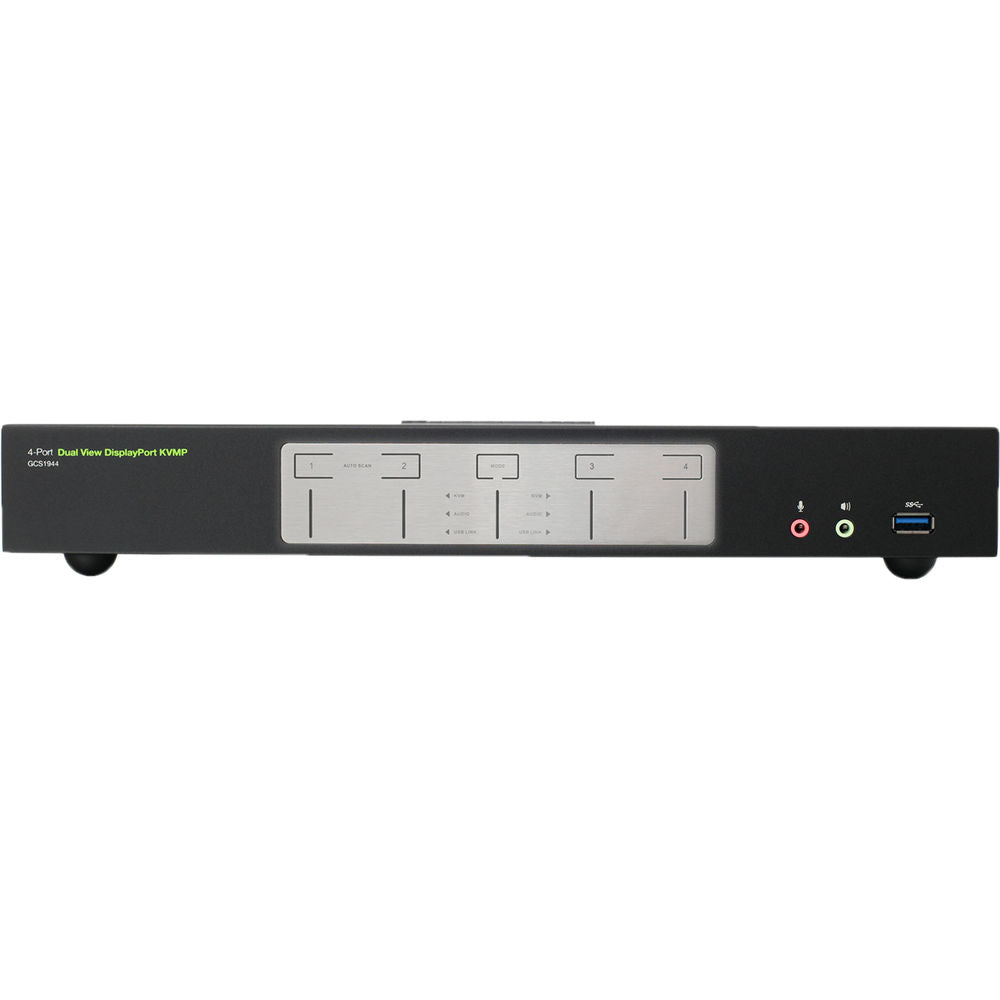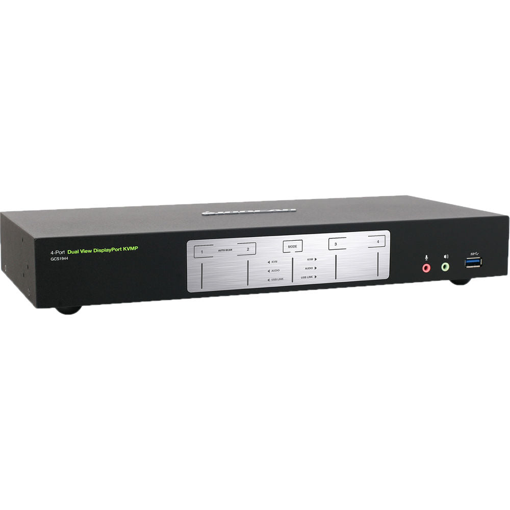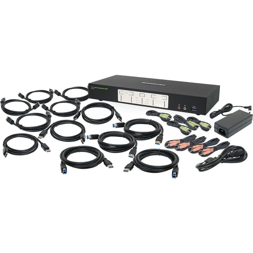 The 4-Port 4K Dual View DisplayPort KVMP Switch from IOGEAR lets you control four desktop computers using a single set of peripherals, which consists of two monitors along with a keyboard, mouse, and set of speakers. The switch supports up to 4K resolutions and is compatible with DisplayPort-equipped monitors and systems. Using buttons on the switch, keys on the keyboard, or the wheel button on the mouse, you can quickly switch between the four computer systems. Moreover, the switch comes with an integrated 2-port USB 3.0/3.1 Gen 1 hub, allowing you to share a printer and scanner between the computers. Included with the switch are 8 DisplayPort cables, 4 USB 3.0 cables, and 4 audio cable sets.