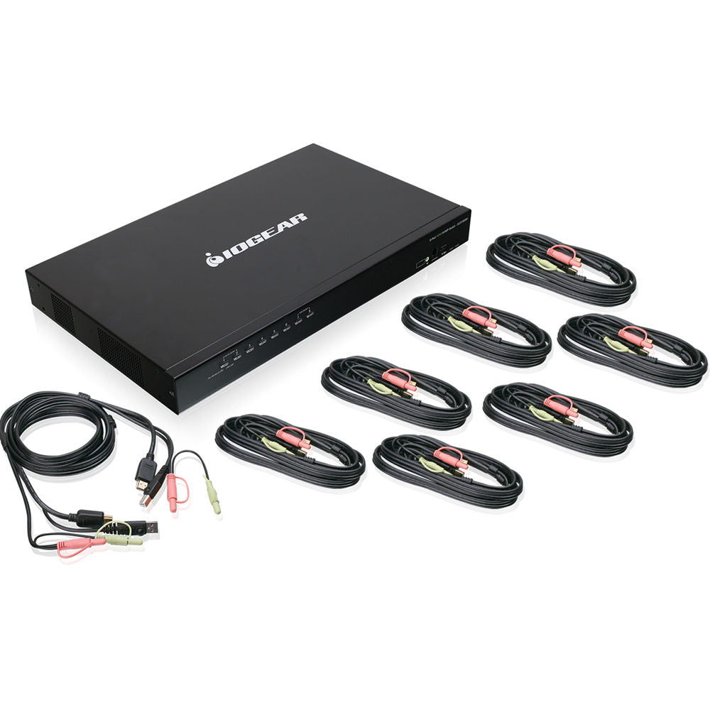 Control up to 8 computers using a single HDMI monitor, keyboard, and mouse with the 8-Port USB HDMI KVMP Switch from IOGEAR . Boasting 8 HDMI inputs and capable of video resolution up to 1920 x 1200, the 8-port switch supports 2.1 stereo surround audio, and it allows you to control up to 512 computers by cascading 3 levels of the switch.