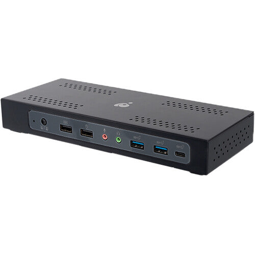 IOGEAR is compatible with Windows and Mac. Two 10 Gb/s USB-C 3.2 Gen 2 ports let you connect up to two USB 3.2 Gen 2, Thunderbolt 3, or Thunderbolt 4 systems, with up to 100W of power available to each system via Power Delivery 3.0. The dock itself is powered using an included 230W AC adapter. Also featured is one 10 Gb/s USB-C 3.2 Gen 2 port, two 10 Gb/s USB-A 3.2 Gen 2 ports, two 480 Mb/s USB-A 2.0 keyboard/mouse ports, a Gigabit Ethernet port, a 3.5 mm microphone input, and a 3.5 mm speaker output. There are also two 4K/60Hz DisplayPort outputs and one 4K/60 Hz HDMI output, so you'll be able to connect up to three 4K displays to this dock at resolutions of up to 4096 x 2160.