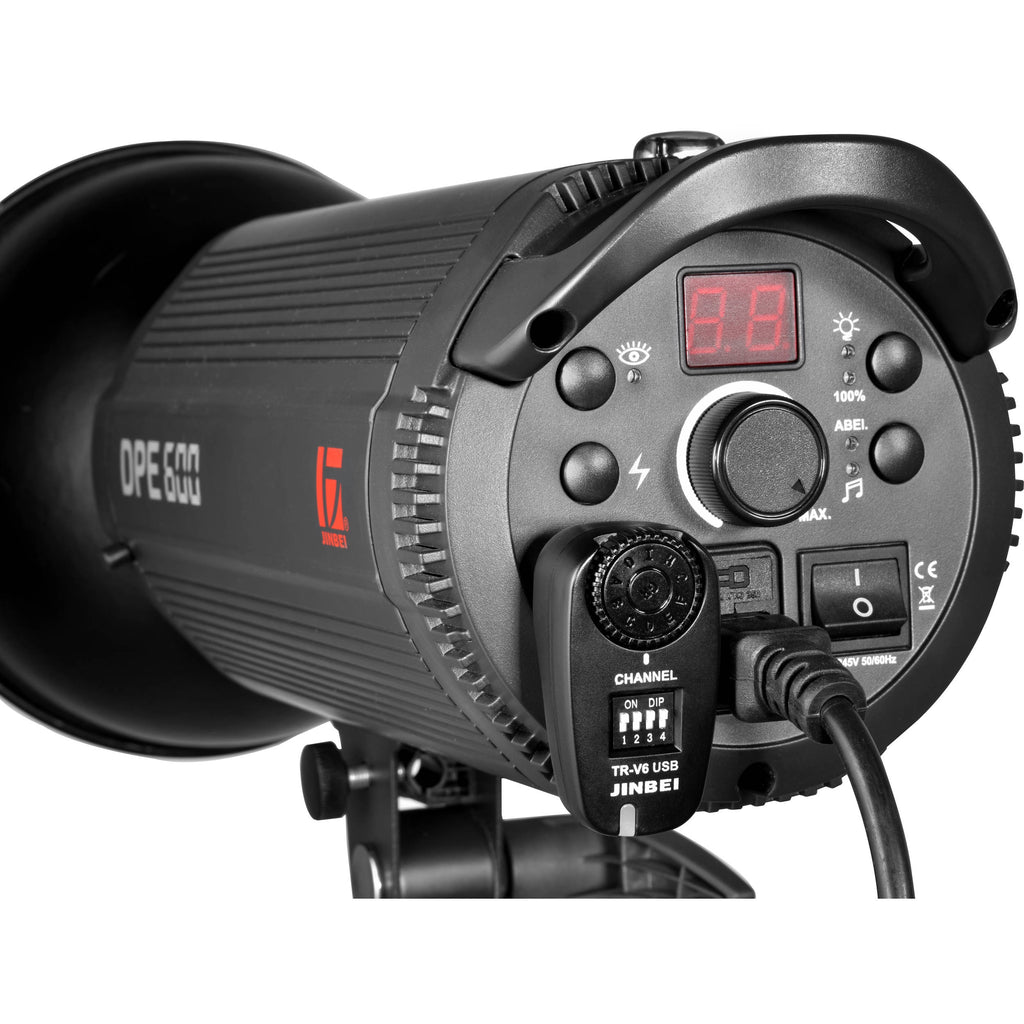 For Use With TR-V6 Digital Flash TriggerFor Select Jinbei Studio Strobe SystemsFeatures Male USB Type-A Plug2.4 GHz Wireless Range: 984.25' The versatile TR-V6 Digital Flash Trigger USB Receiver from Jinbei works wirelessly with select Jinbei studio strobe units to provide adjustable manual strobe control.
