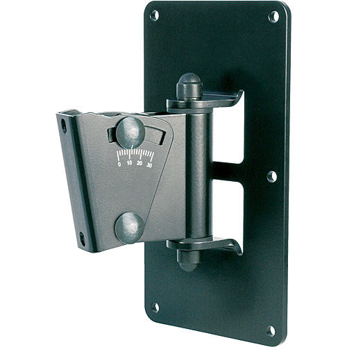 The black 24481 Speaker Wall Mount from K&M is a multi-purpose wall mount with a large wall plate, designed for heavy speakers. Once mounted, you can swivel your speaker from side to side and tilt it up to 30°. This mount is easily mounted via convenient hooking in and screw locking. The maximum load capacity of this wall mount is 55.1 lb.