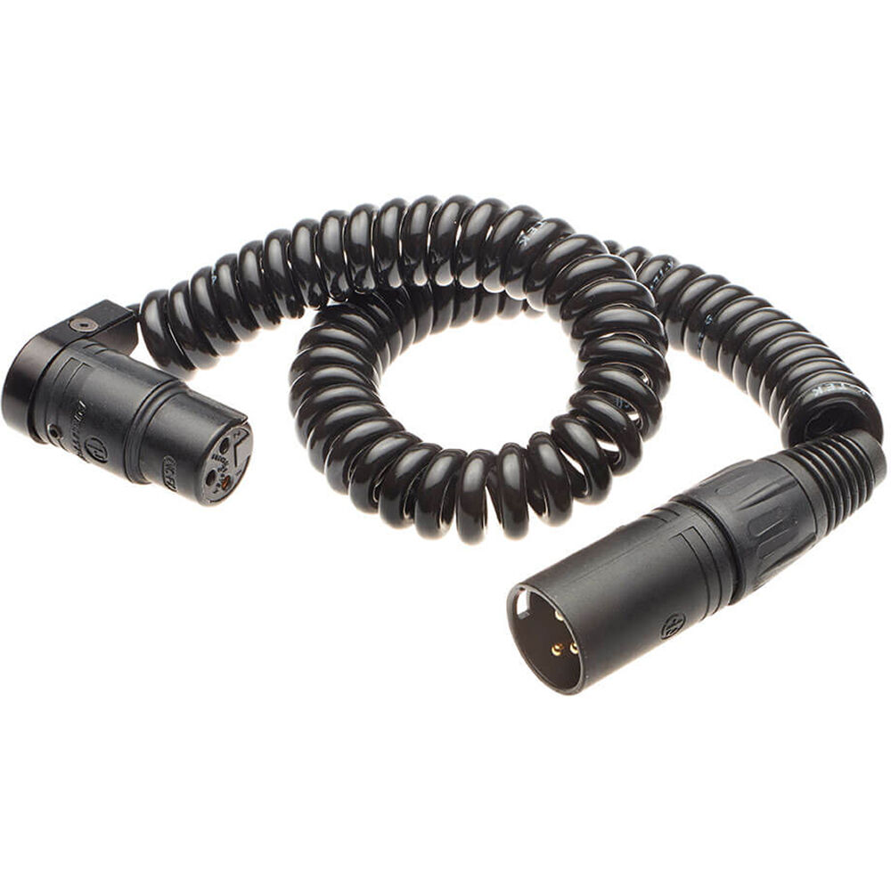 Ideal for connecting your boompole to the recorder/mixer in your audio bag, the K-Tek KPC10K Coiled XLR Jumper Cable is a 28 AWG, coiled XLR cable with one K-Tek, low-profile right-angle 3-pin XLR female connector on one end, and a Neutrik straight 3-pin XLR male connector on the other. The cable stretches up to 10'.