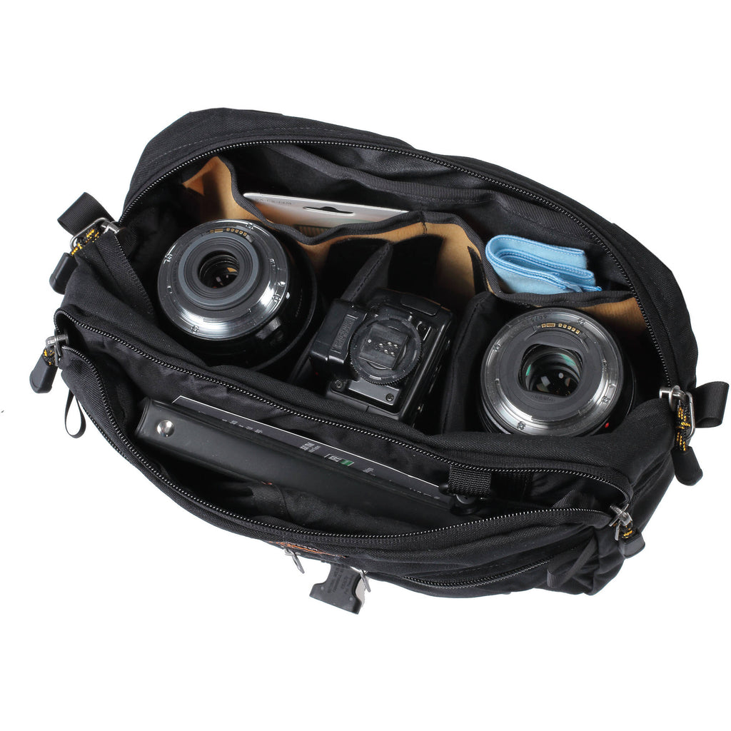 This A634 Reporter's Waist Pack from Kinesis is a minimally-padded bag with numerous pockets and slots for your phone, sunglasses, lenses, camera bodies, business cards, coins, video tapes, checkbook, passport, airline ticket, and more. It has removable and adjustable interior dividers, the waist belt is adjustable from 24-47", and the YKK water-repellant zipper closes up the main section to help keep your items safe.