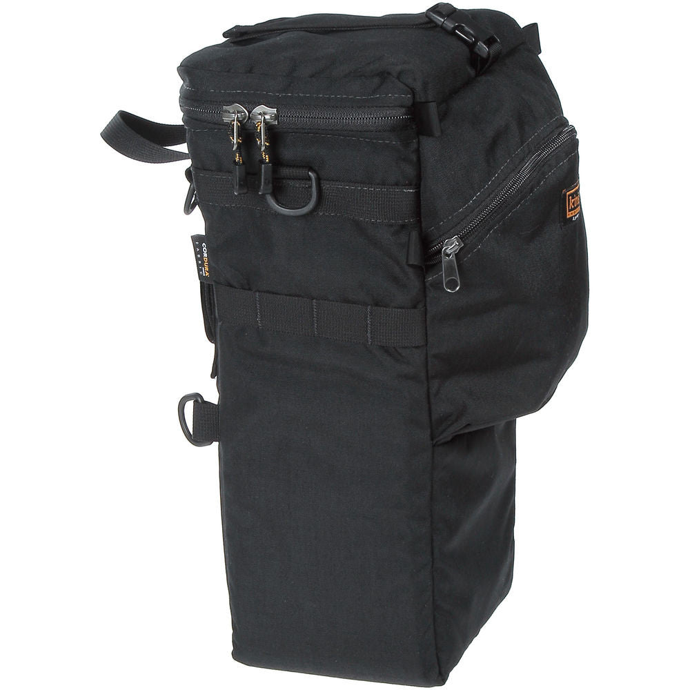 Comfortably carry your pro DSLR with a 70-200/2.8, 80-400, or other long lens attached with the black C850 Extra Large Holster Case from Kinesis . The holster also accommodates your lens hood in the ready-position, and a select flash or prime lens that fits in the front, exterior zip pocket. Large zipper pulls make accessing gear fast and easy. Under the lid is a zip pocket for small items such as memory cards, lens cloths, and caps. Two, Siamese SlikClip Buckles are included for attaching old-style Kinesis TwinBuckle Pouches.