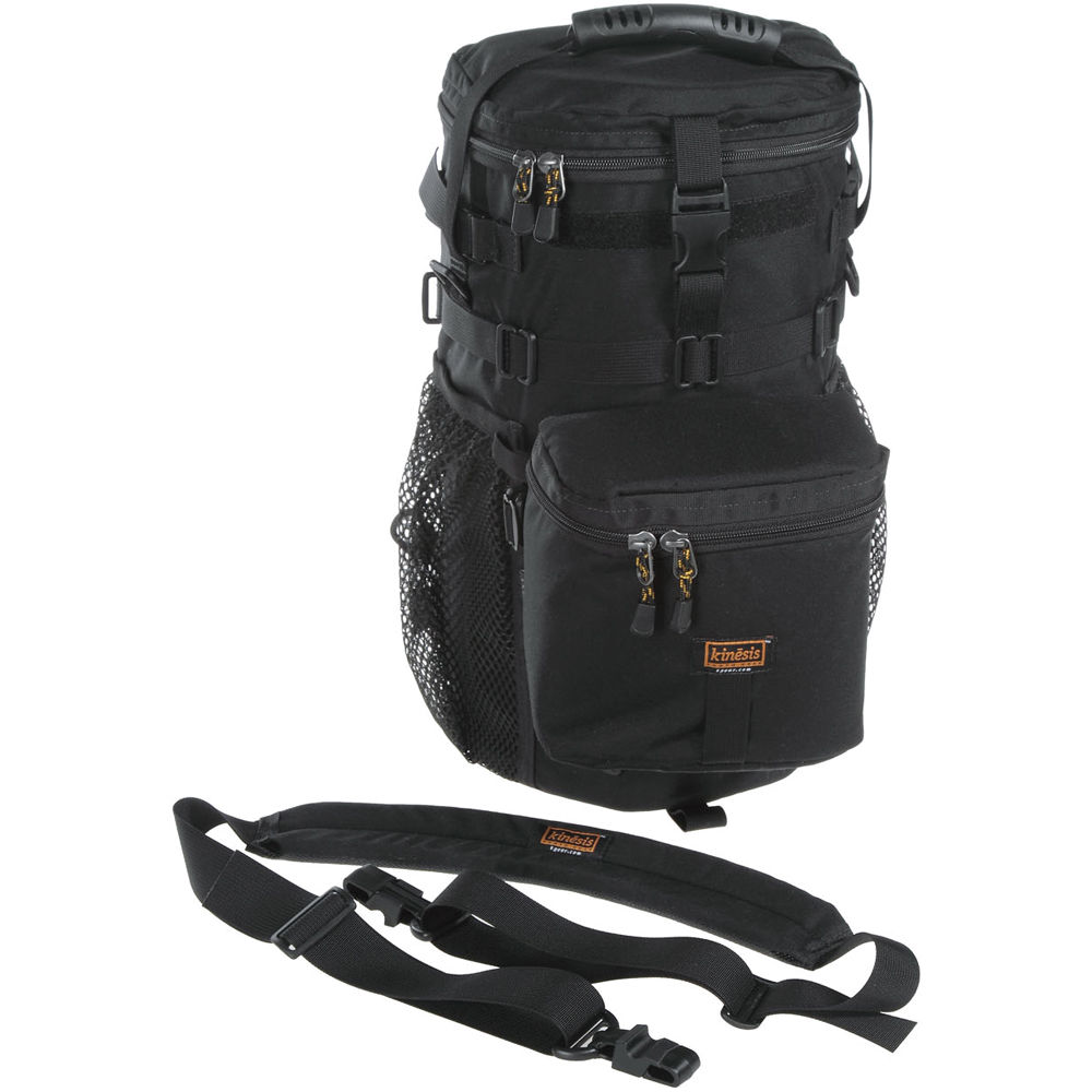 The exterior consists of 500 denier nylon for water-resistance. A Kinesis Y515 Heavy-Duty Padded Shoulder Strap is included to allow the case to be carried over one shoulder. Also included is a Kinesis A257 Body Pouch which can accommodate one pro-sized DSLR and can be attached to the lens case.