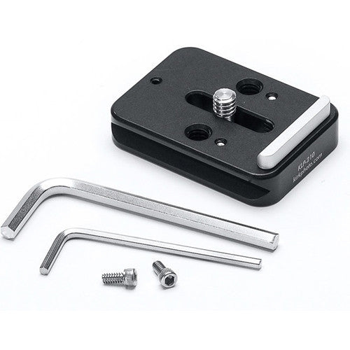 The KLP-210 from Kirk Enterprises is an Arca-type quick release plate designed specifically for the Fujifilm 100-400mm f/4.5-5.6 R LM OIS WR XF telephoto lens. The plate features a variable lip which can be mounted in either a 30° or 90° angle position to accommodate the shape of your tripod collar. It also includes a captive stainless steel 1/4"-20 mounting screw and integrated safety stops for compatible quick release systems.